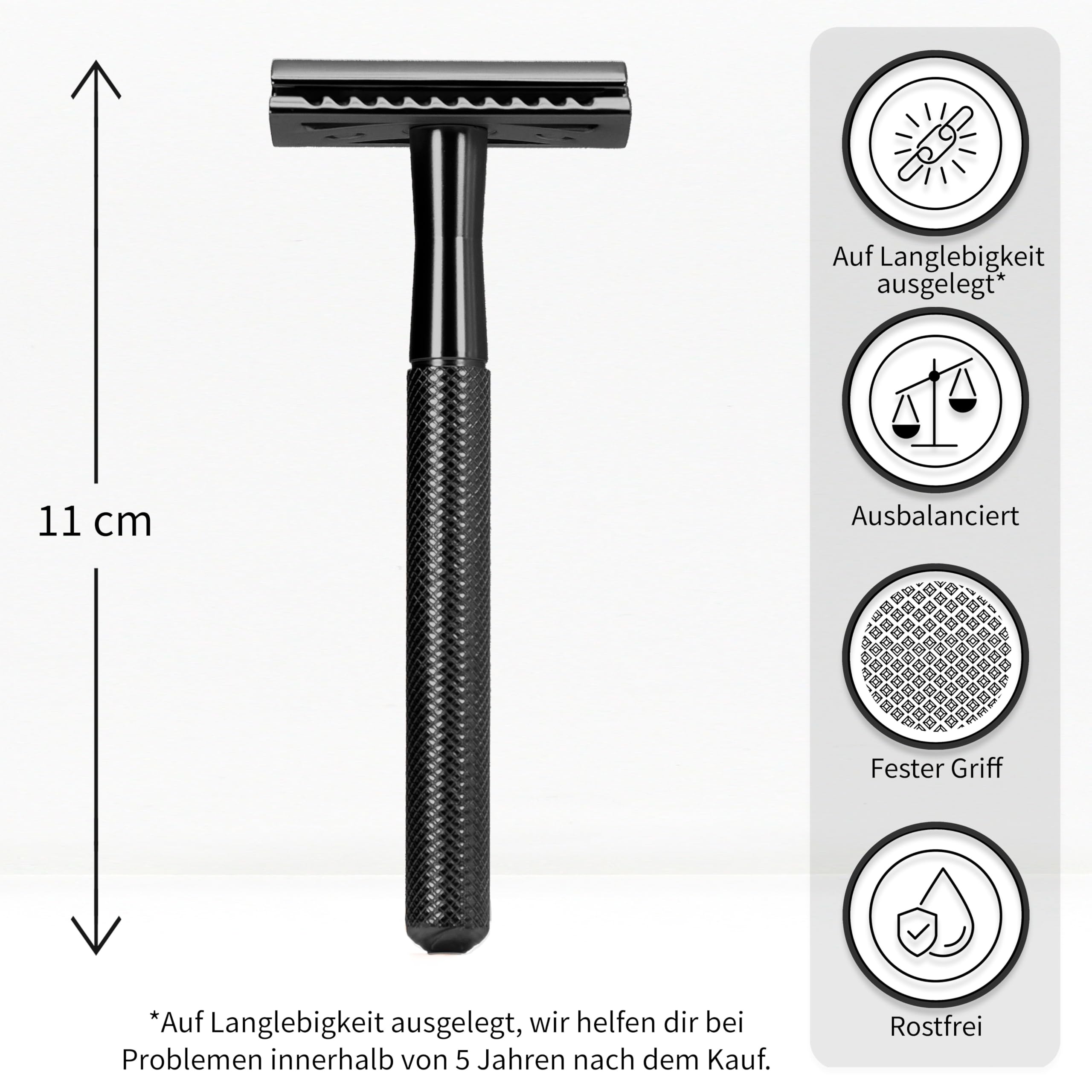 Bambaw Rasierhobel Herren mit 5 Rasierklingen, Metall Rasiermesser Herren, Rasierer Eine Klinge Wiederverwendbar & Sicher, Für Eine Präzise & Glatte Rasur, Geeignet für Alle Hauttypen (Schwarz)