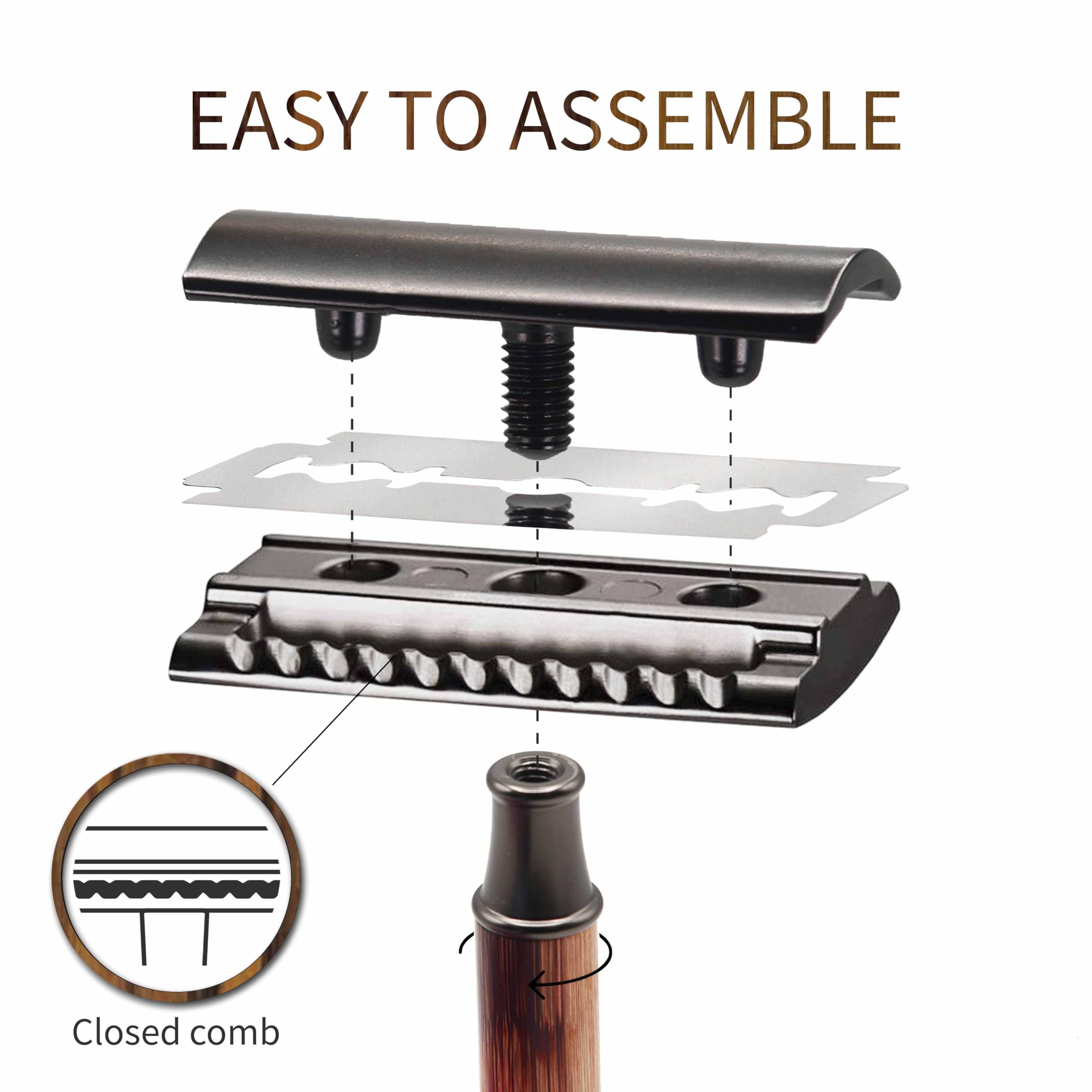 Bambaw Rasierhobel Herren & Damen mit Rasierhobel Klingen (5 Stück), Einklingen Rasierer Herren, Sicher & Wiederverwendbar, Für Eine Sanfte & Präzise Rasur (Bambus Schlank Schwarz)