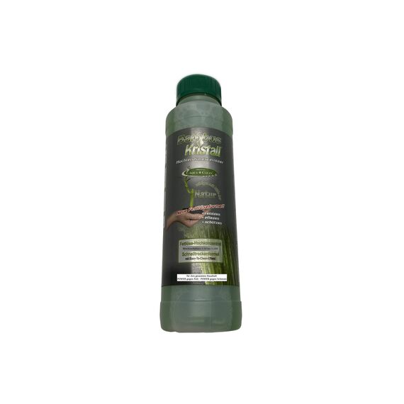 Bambus-Kristall Hochleistungsreiniger - Dieses neue Hochleistungreiniger mit Bambusextrakt - ein wahres Hochkonzentrat ist dermatologisch getestet und dadurch schonend zur Haut, aber dennoch etrem wirksam gegen alle Verschmutzungen. Extrem wirtschaftlich - materialschonend - universell einsetztbar - eine einfach mühelose Reinigung Bambus-Kristall Hochleistungsreiniger mit Bambusextrakt ist in seiner konzentrierten Form von 1:100 nicht nur richtig sparsam in der Anwendung, sondern auch umweltschonend. Hier reinigt man, mit ruhigem Gewissen, alle Flächen und Materialien. Ein wahres Fettlöse-Hochkonzentrat. Sie erhalten: 1 x Bambus-Kristall Hochleistungsreiniger 1000ml