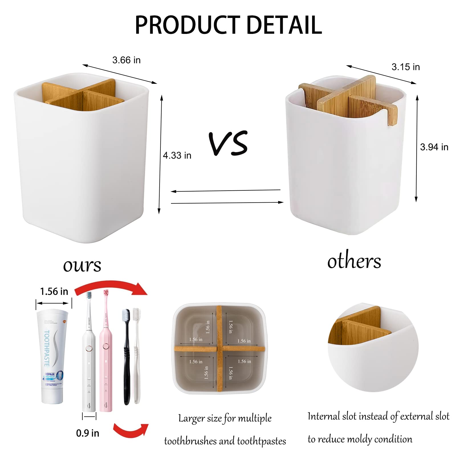 Bambus Zahnbürstenhalter für Badezimmer, 4 Steckplätze Zahnbürste und Zahnpasta-Halter, Badezimmer-Theken-Organizer für elektrische Zahnbürsten, Zahnseide, Rasierer – Weiss