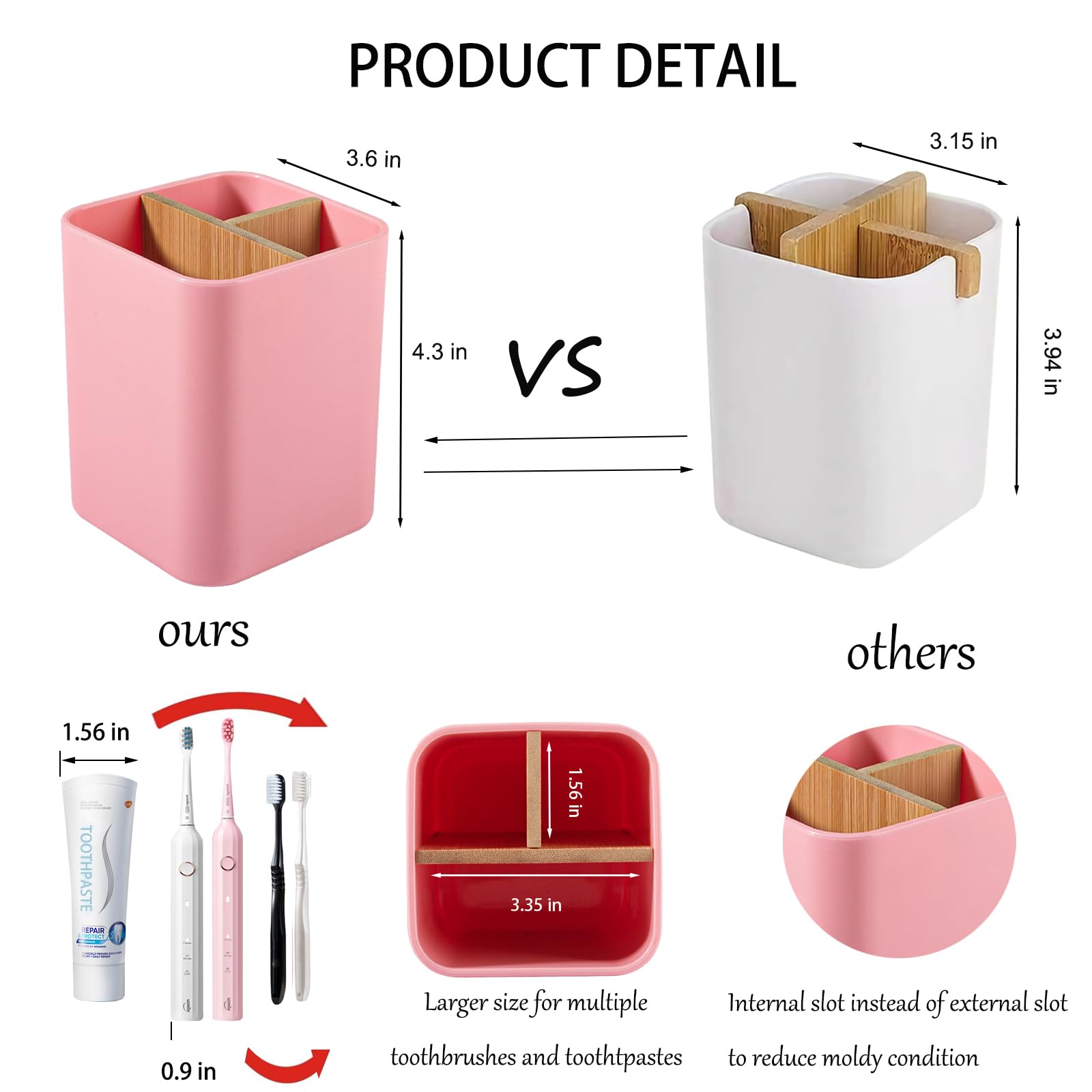 Bambus-Zahnbürstenhalter für Badezimmer, 3 Schlitze, Zahnbürsten- und Zahnpasta-Halter, Badezimmer-Theken-Organizer für elektrische Zahnbürsten, Zahnseide, Rasierer – Rosa