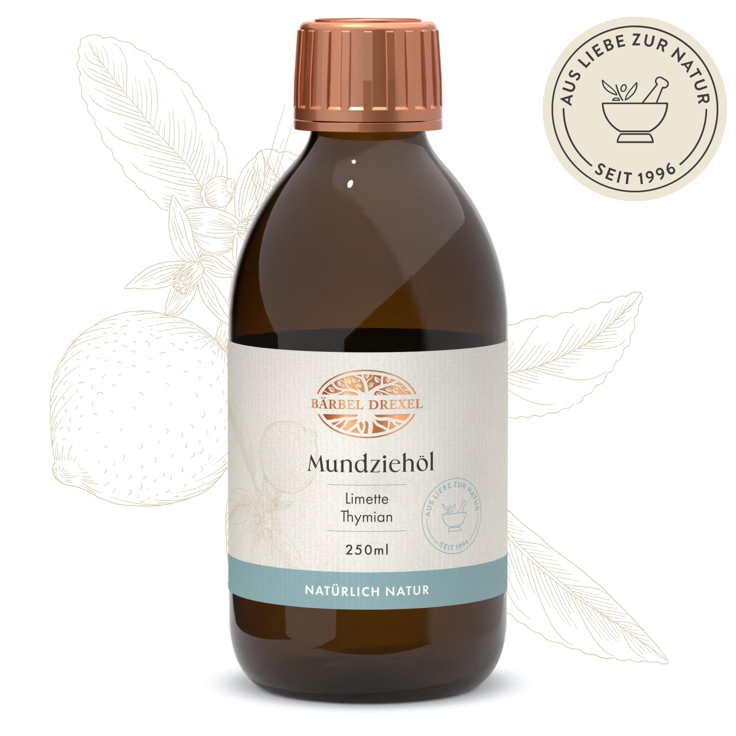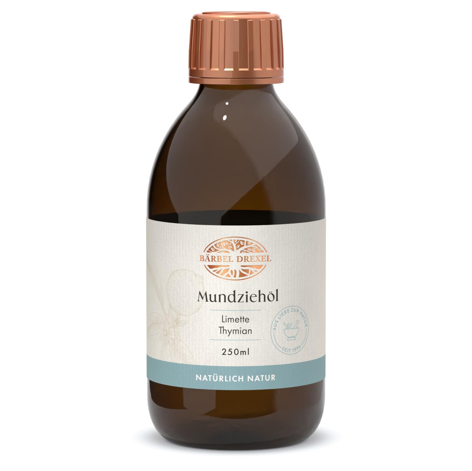 BÄRBEL DREXEL® Natürliches Mundziehöl Limette Thymian (250ml) Ayurvedische Mundspülung zum Entgiften 100% Vegane Herstellung Deutschland Ölziehkur Mundöl Ölziehen Zahnöl