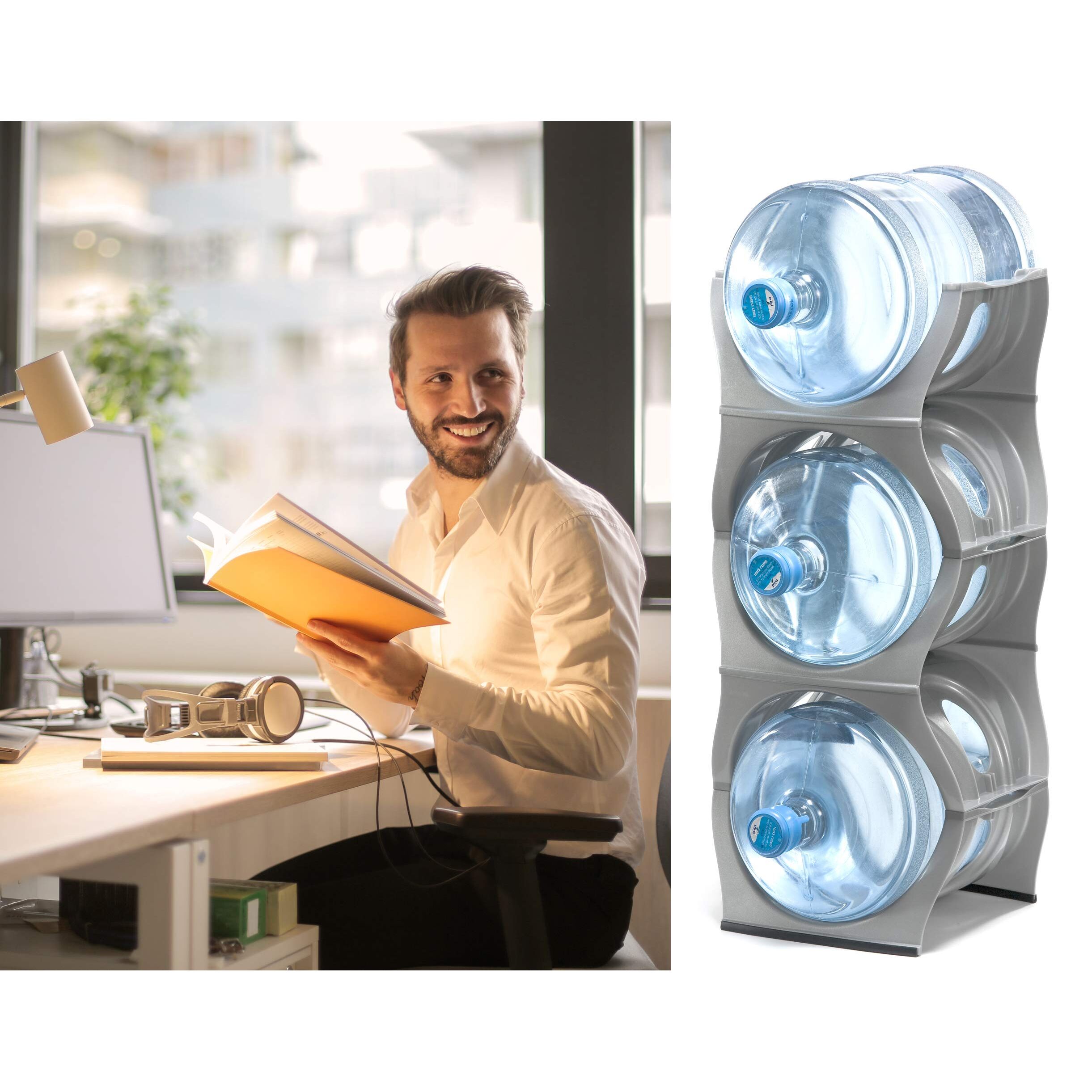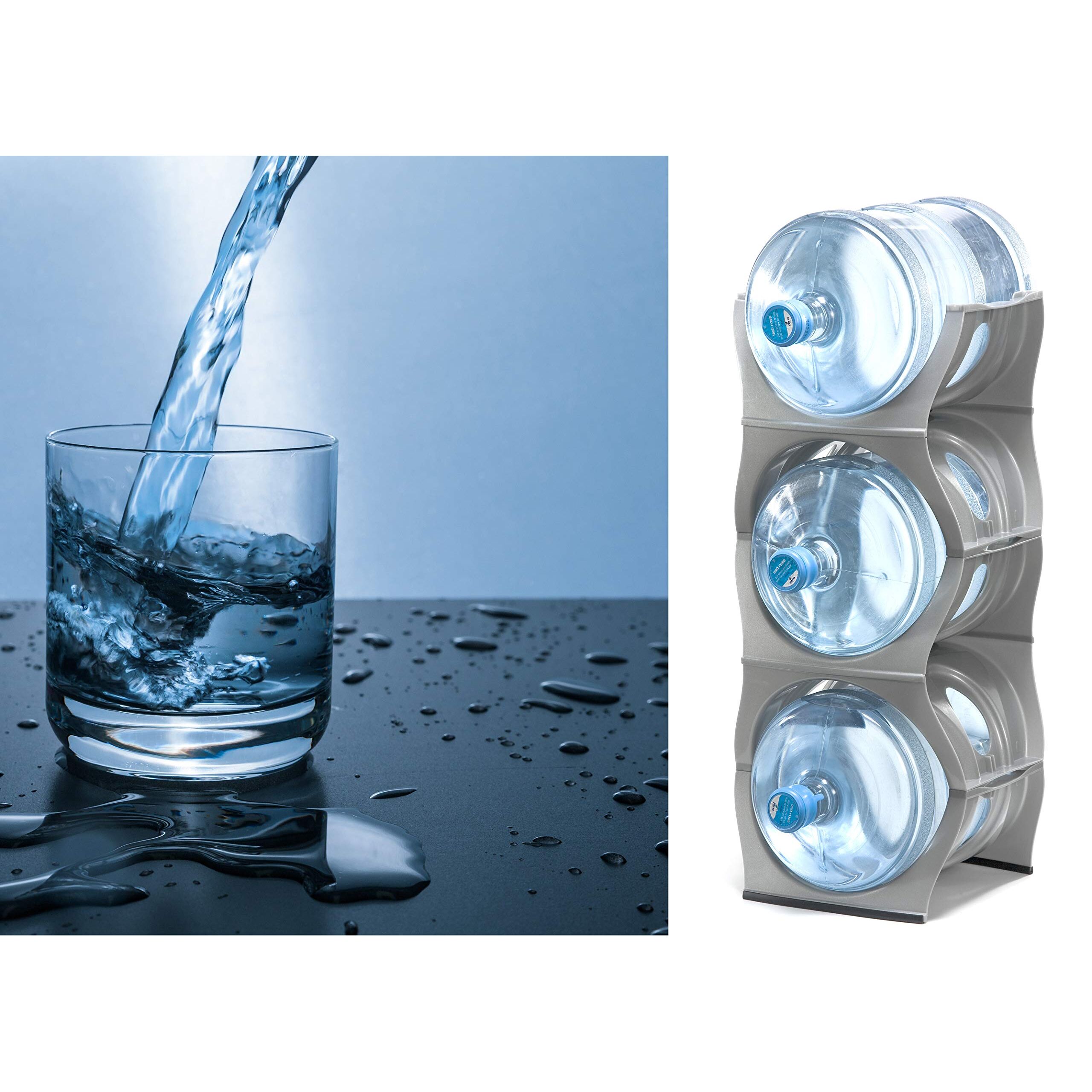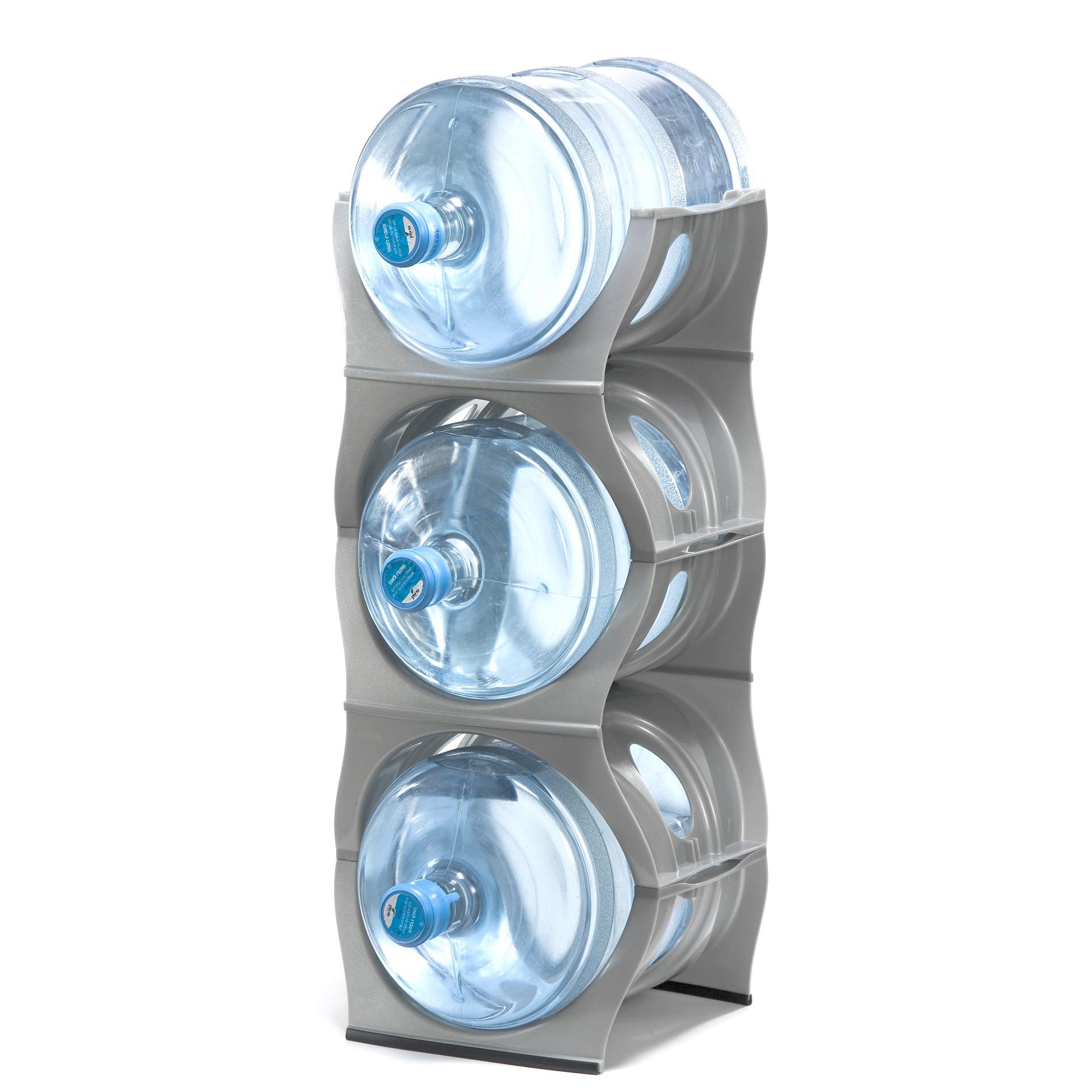 Bariboo Stapelbares Wasserflaschen-Aufbewahrungsregal, beste Wasserkrüge, 1,8 l, Krughalter für Küche, Schrank und Büro, verstärktes Polypropylen (Silber, 3 ohne Regal)
