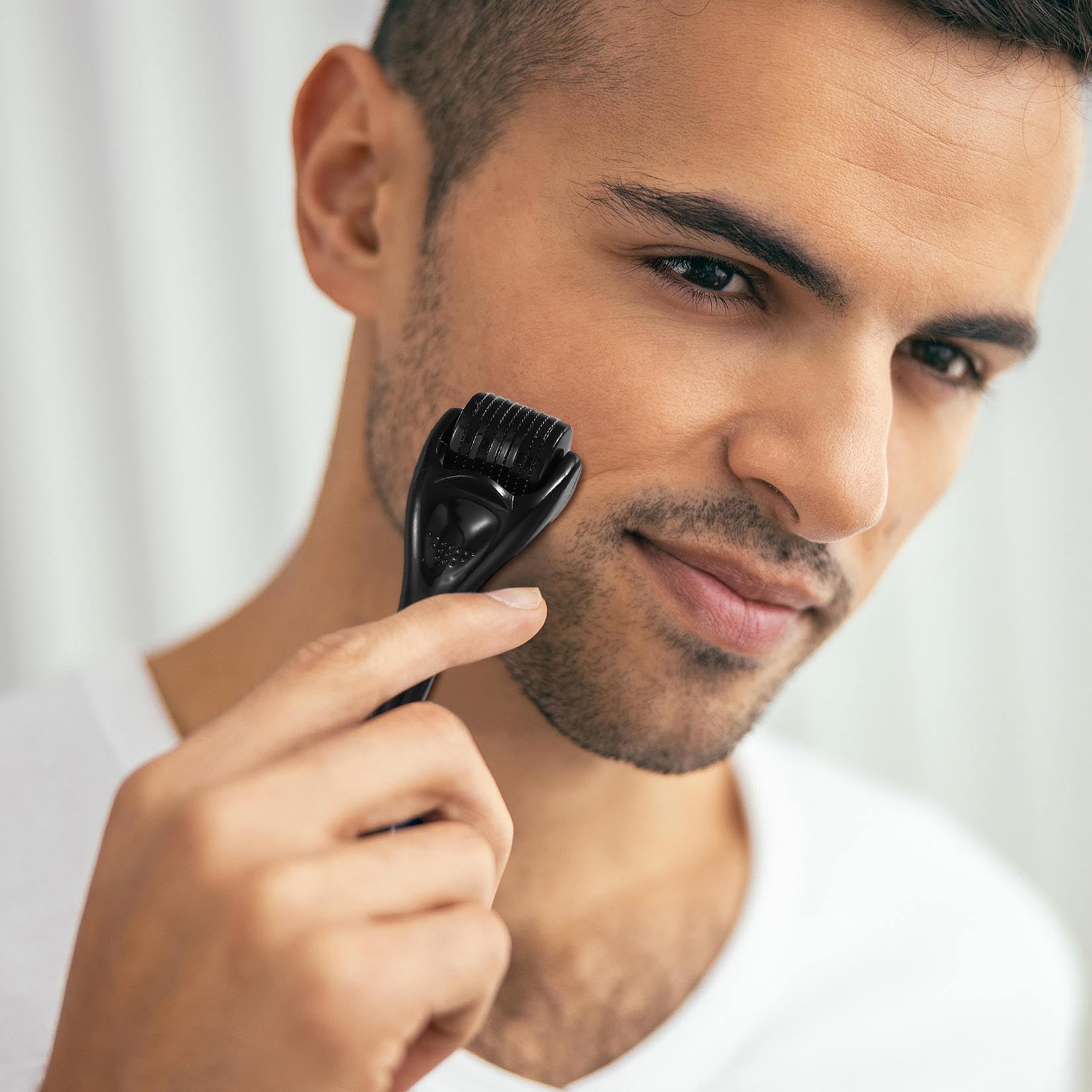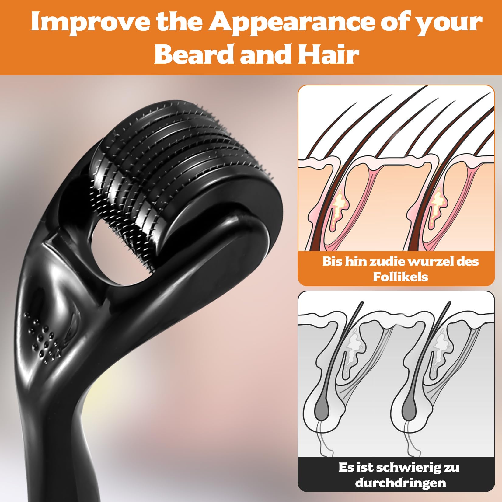 Bartroller 0,5 mm – Microneedling Derma Roller für Bartwuchs, Haut- & Haarpflege, Gesicht & Koerper (2x Schwarz)