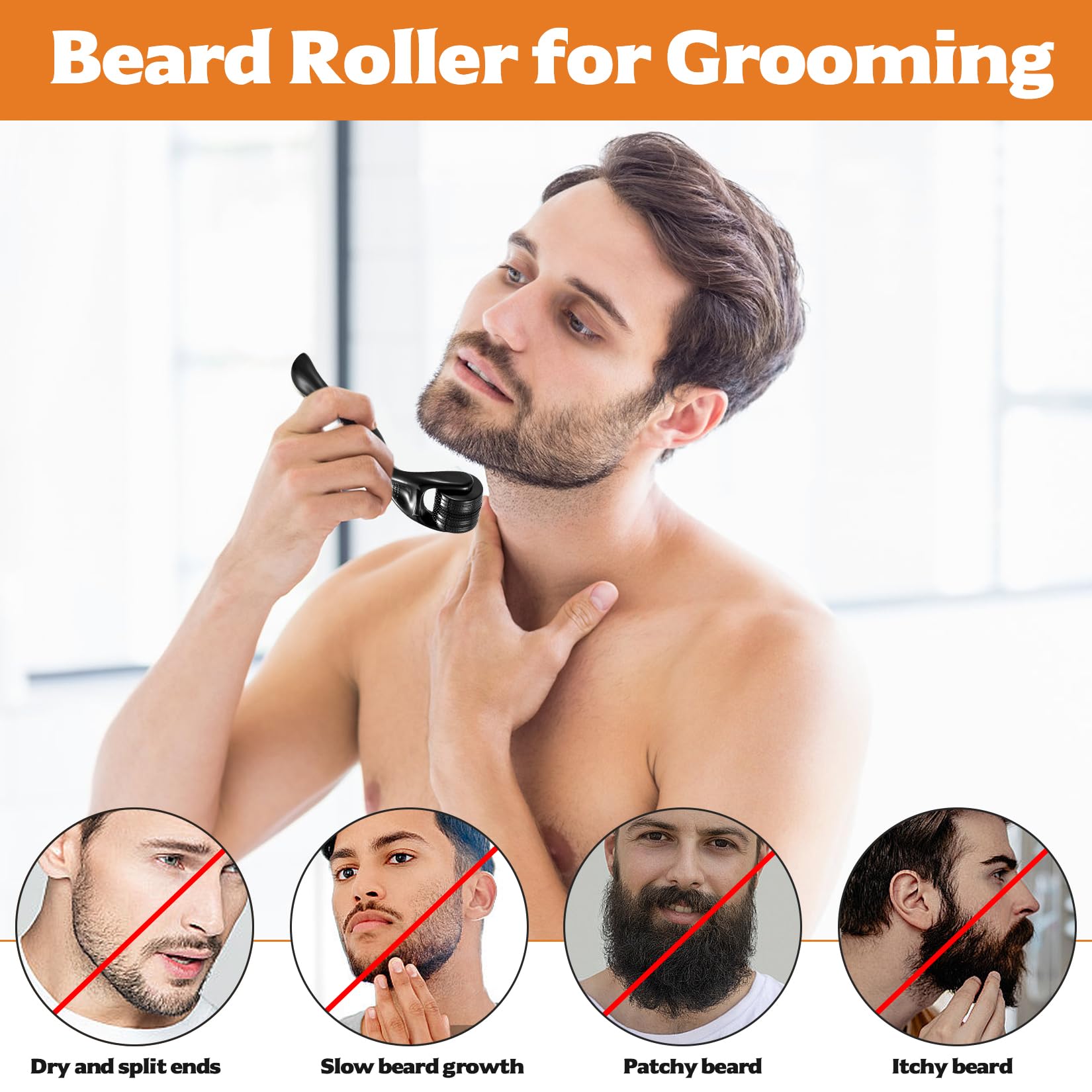 Bartroller 0.5 mm – Microneedling Roller fuer Bartwuchs & Hautpflege | Mikronadelroller fuer Gesicht & Koerper | 2er-Set Schwarz