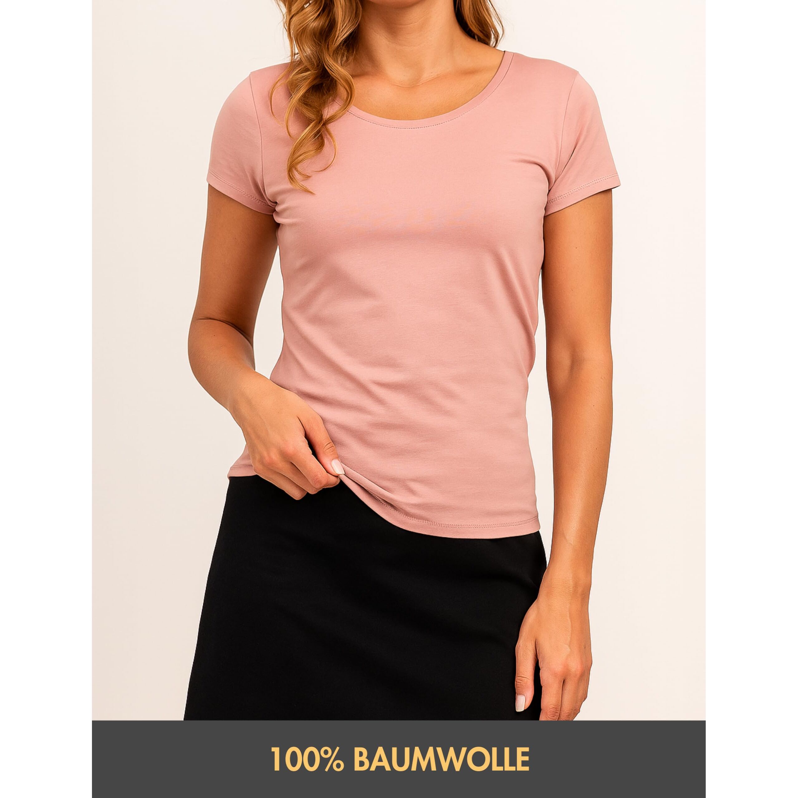 Fehlt da nicht noch etwas? Ergänzen Sie Ihre Garderobe mit unserem eleganten und bequemen TShirt für Damen „BTRasmine“ im praktischen 3er-Pack in Rosa, Beige und Grau meliert. Dieses Modell ist die ideale Wahl für alle Frauen, die eine Kombination aus Komfort, Stil und Vielseitigkeit wünschen. Erhältlich in den Grössen S, M, L und XL passt dieses T Shirt für Damen aus Baumwolle makellos in jede Garderobe. Egal ob Sie ein zartes rosa T Shirt, ein zeitloses beige T Shirt oder ein graumeliertes T Shirt für den Alltag oder für formellere Anlässe suchen, unser „BTRasmine“ ist stets der richtige Begleiter. Das Damen Shirt ist aus 100 % Baumwolle gefertigt und bietet den ganzen Tag über einen angenehmen Tragekomfort. Die reine Baumwolle sorgt jedoch nicht nur für ein natürliches und angenehmes Tragegefühl, sondern verleiht den Shirts auch eine hohe Strapazierfähigkeit. Das macht sie reissfest, atmungsaktiv und langlebig und durch das praktisch aufgedruckte Etikett auf der Innenseite wird ein störendes Gefühl im Nacken vermieden. Unsere „BTRasmine“ sind so konzipiert, dass Sie sie auf viele verschiedene Arten kombinieren können, um Ihren gewünschten Style zu kreieren. Tragen Sie das rosafarbene, beige oder graumelierte TShirt für Damen mit einer Jeans für einen entspannten Alltagslook in der Freizeit oder kombinieren Sie es mit hohen Schuhen und einem Blazer für ein formelleres Outfit. Die „BTRasmine“ sind vielseitig und lassen sich leicht in die Garderobe einer jeden Frau integrieren. Wählen Sie Ihren Favoriten aus unserer Auswahl und kreieren Sie noch heute Ihren persönlichen Look.