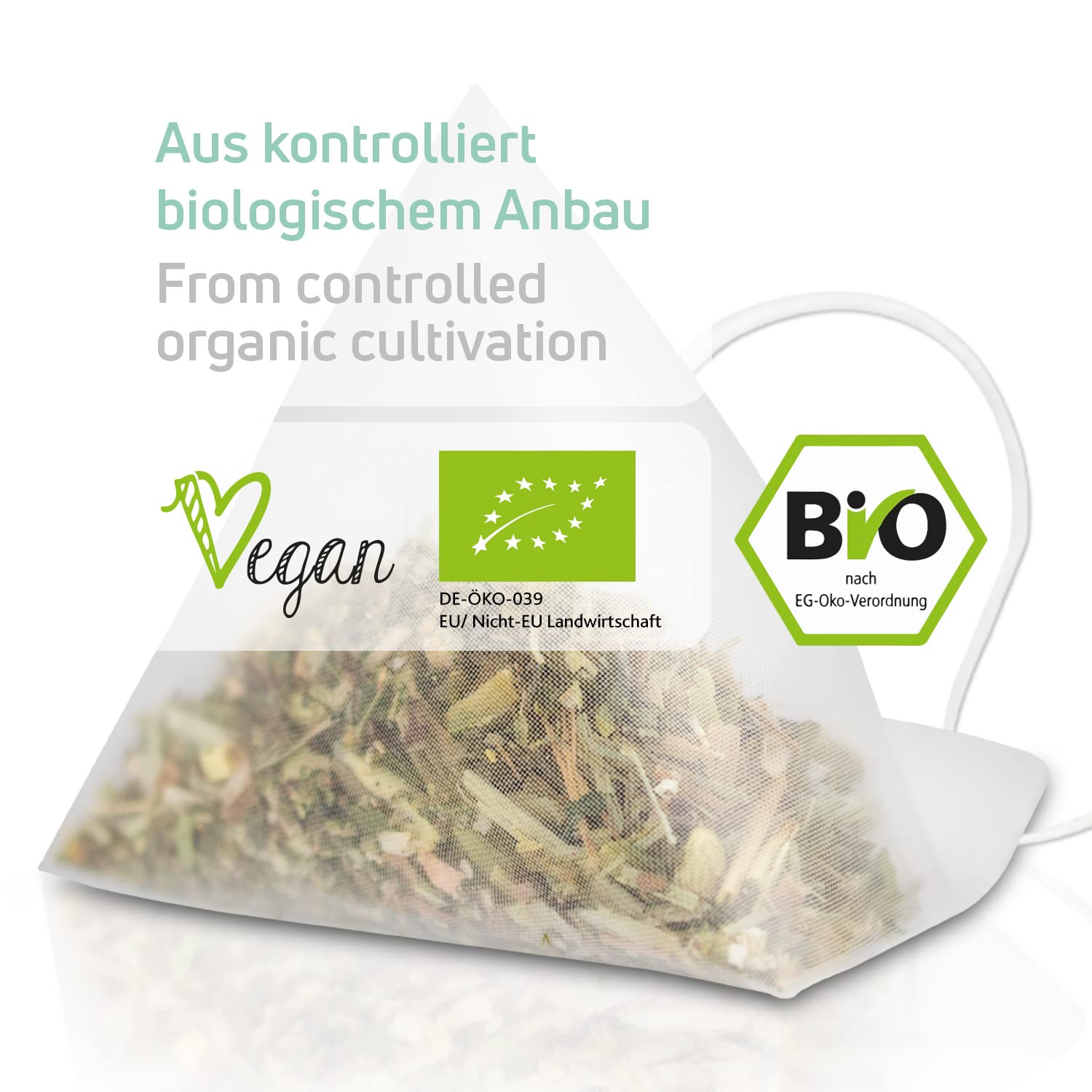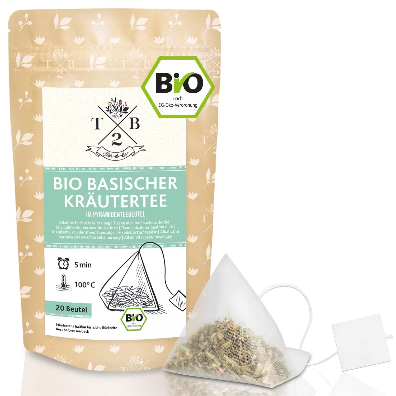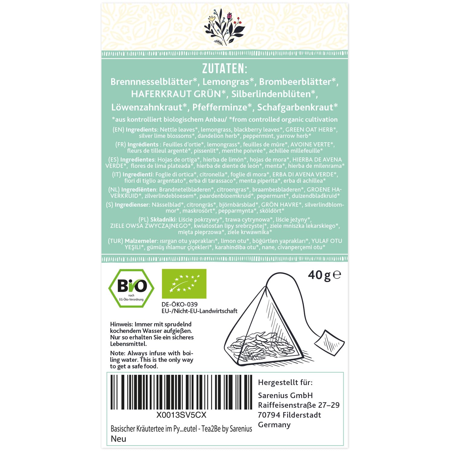 Basischer Kräutertee im Pyramiden Teebeutel – Bio-Qualität – zur basischen Ernährung mit Brennnessel, 20 Beutel – Tea2Be by Sarenius