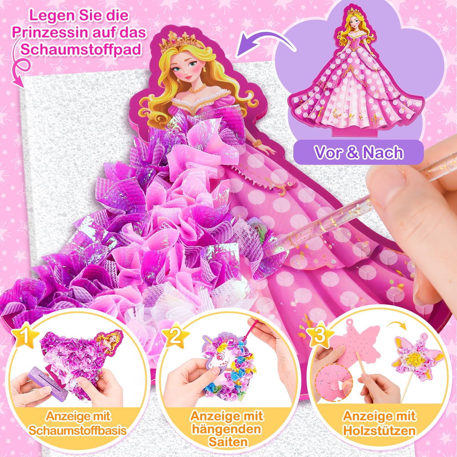 Kreativ Prinzessin DIY Bastelset für Kinder Spielzeug ab 5-10 Jahre Mädchen Kindergeburtstag GeschenkideenEntdecken Sie die Freude am Basteln mit unserem DIY Farbige Stoffstempel Blumen Set! Dieses kreative Bastelset enthält 10 wunderschöne Blumenformen, die mit bunten Stoffstücken und Holzstäbchen kombiniert werden können. Die bunten Stoffstücke sind in verschiedenen Farben und Texturen erhältlich, was Ihnen unendliche Möglichkeiten für Ihre Designs bietet. Egal, ob Sie ein erfahrener Bastler oder ein Anfänger sind, dieses Set ist perfekt für alle Altersgruppen. Kreatives Kinder Spielzeug ab 5 6 7 8 9 10 Jahre Mädchen!