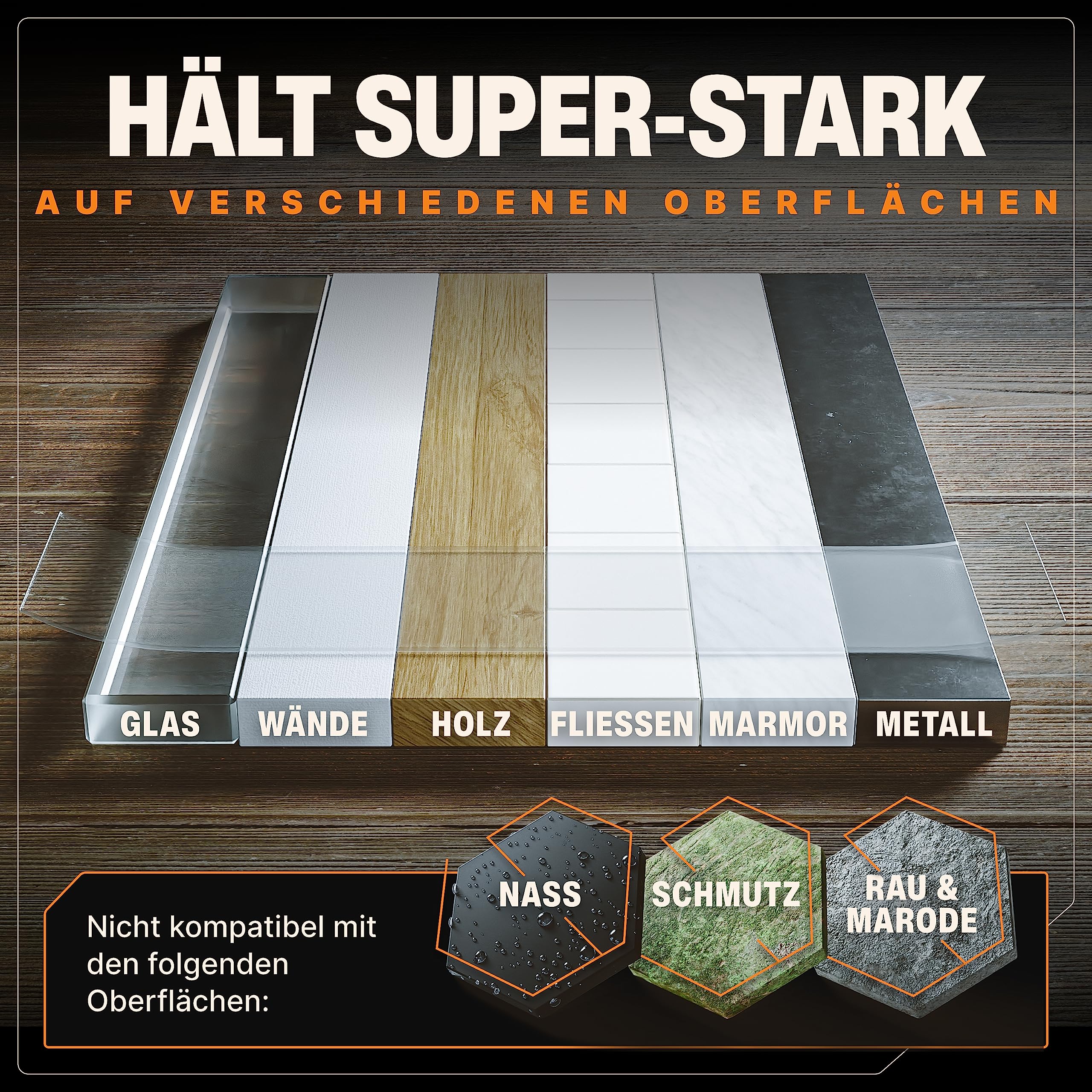 Mit dem innovativen Nano Klebeband von BAURIX befestigen Sie zuverlässig und spielerisch leicht verschiedene Gegenstände bis zu 1 kg an Ihrer Wand. Ganz ohne Bohren!