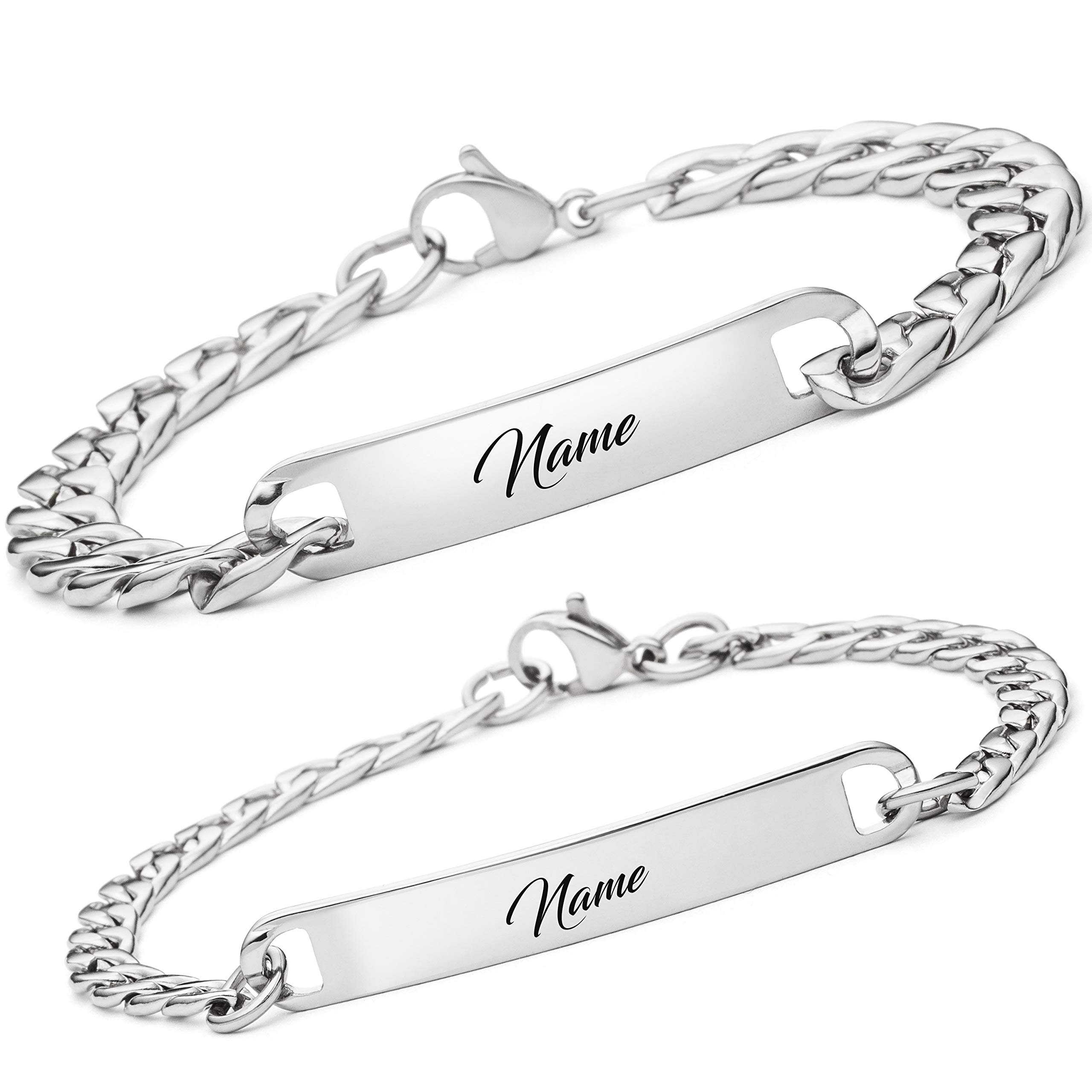 BAVELA Partnerarmbänder mit Gravur | Personalisierte Armbänder | Partnerarmband für Paare | Pärchen Armband | in Silber und Schwarz | Armband mit Gravur