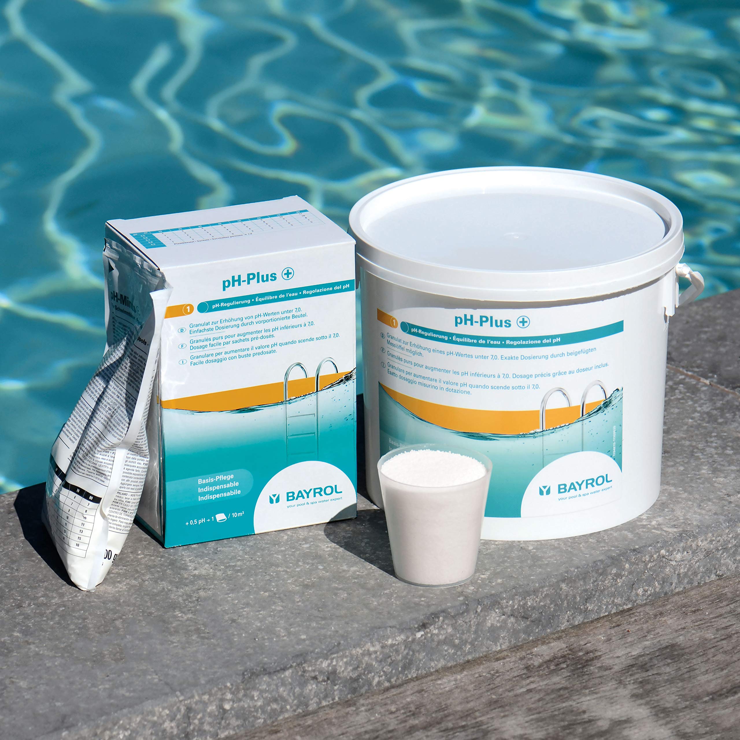 BAYROL pH-Plus 12kg - pH Heber Granulat für Pool - pH Wert Heber - Schnelle Anhebung des pH-Werts - enthält Dosierbecher - pH Plus Pool - pH Wert im Pool erhöhen