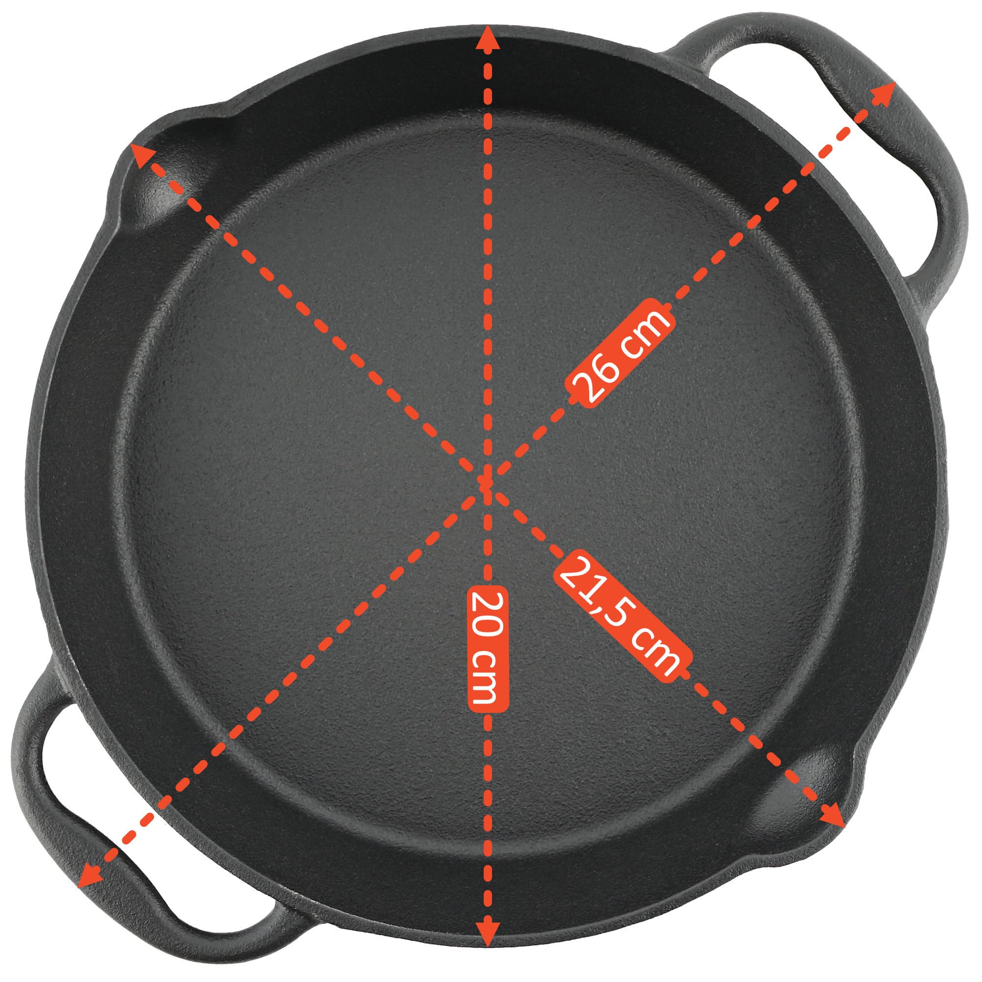 BBQ-Toro Gusseisen Grillpfanne Ø 20 cm | Gusspfanne mit zwei Griffe und zwei Ausgiesser | Servierpfanne aus Gusseisen | Pfanne für Gasgrill, im offenen Feuer, Elektro-Herd | Grillzubehör