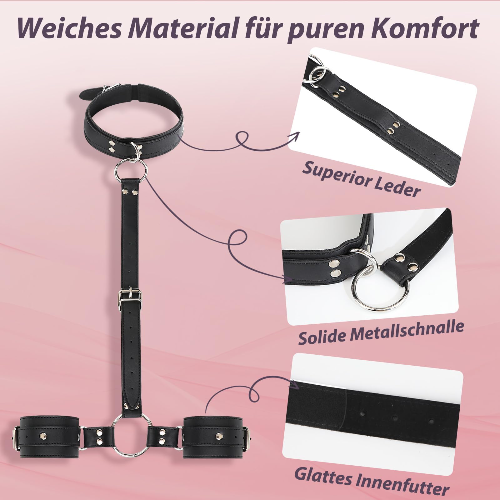BDSM Sexspielzeug für Paare Extrem Sex - Fesseln Bondage Set Sex Spielzeug für die Frau mit Verstellbares Ledertextur Handschellen & Halsband, Bdsms Erotisches toys für Frauen Männer Sexspiele in Bett