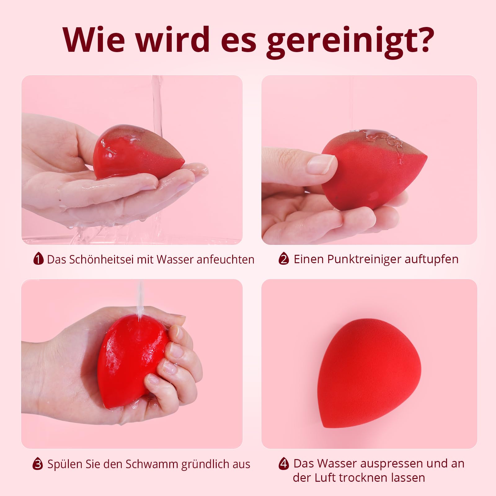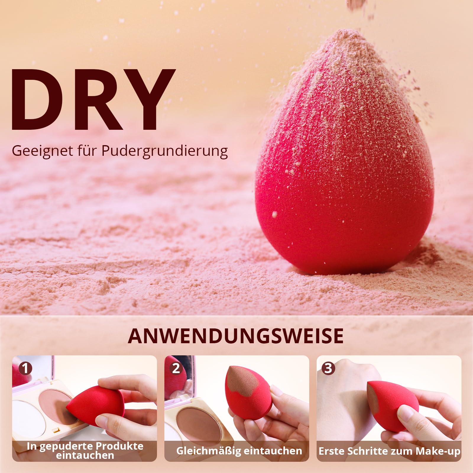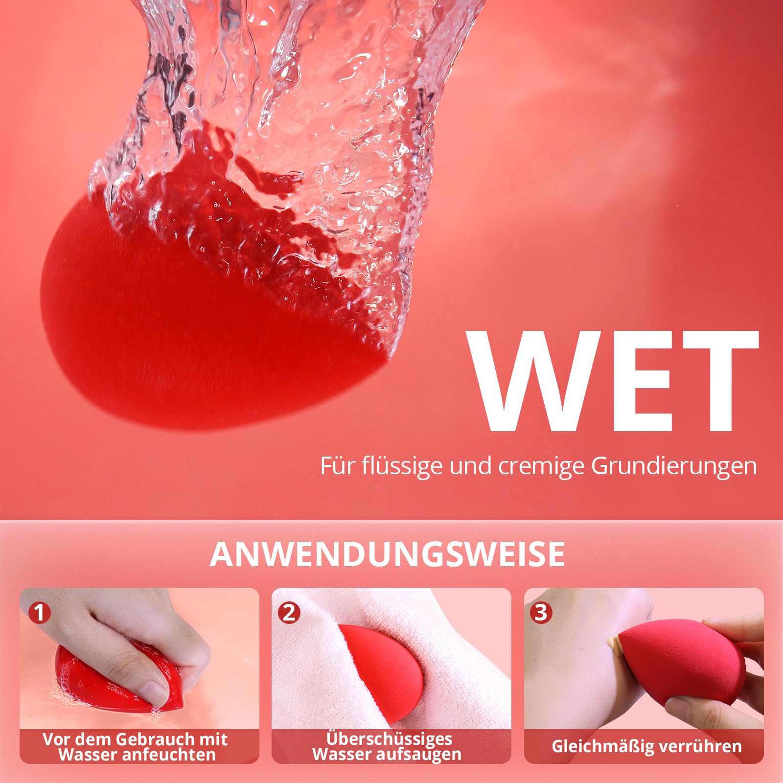 Die Schwämme sind waschbar, langlebig und wiederverwendbar. Sie lassen sich leicht reinigen, trocknen schnell und behalten auch bei regelmässiger Nutzung ihre Form und Qualität. Durch das kompakte Set sind sie ideal für den täglichen Einsatz zu Hause oder für Touch-ups unterwegs.