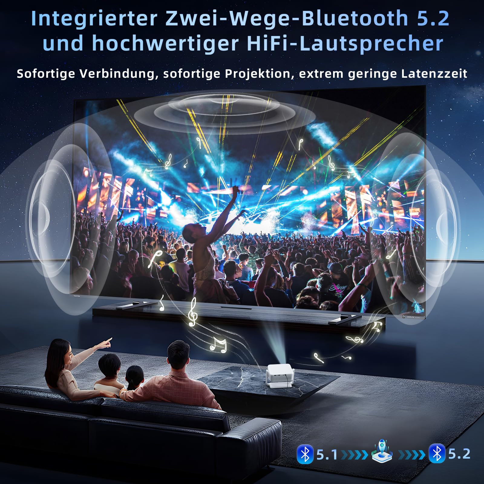 Beamer丨[Elektrischer Fokus丨Auto Keystone] 4K Full HD 1080P Unterstützt,WiFi 6 und Bluetooth丨Mini beamer, 300 Zoll, 360-Grad-Drehbar Projektor, Ideal für Heimkino丨Outdoor Beamer Kompatibel mit Handy,PC
