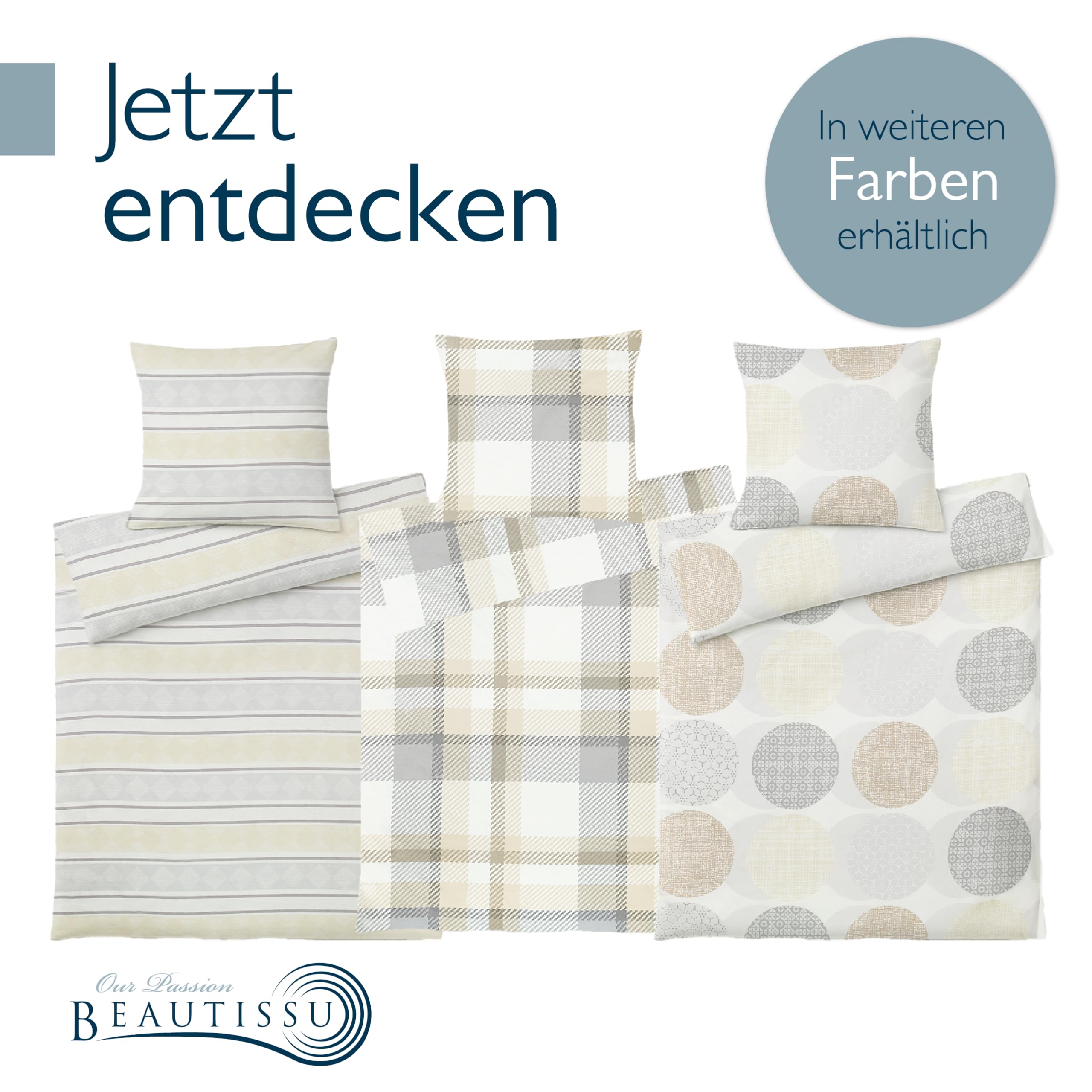 Beautissu Biber Bettwäsche 135x200 cm 4teilig Mira – Warme Flanell Winterbettwäsche Biberbettwäsche Bettbezug & Kissenbezug 80x80 cm, Warme Feinbiber Bettwäsche 135x200 Bettwäsche-Sets Beige