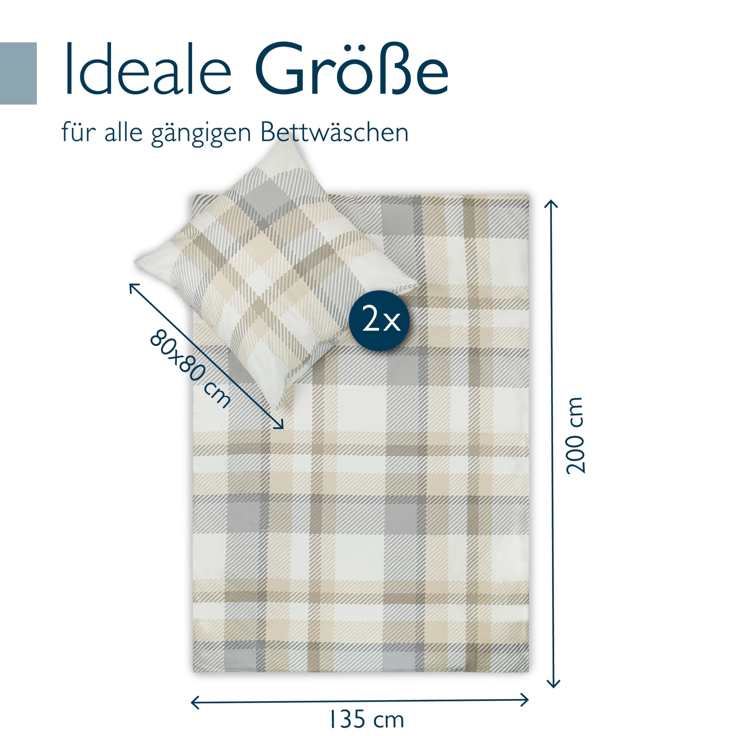 Biber Bettwäsche Set 4teilig 135x200cm & 80x80cm Kopfkissenbezug Geniessen Sie kuschelig warme Nächte in der Biber Bettwäsche von Beautissu. Das 4teilige Bettwäsche Set aus Flannel liegt besonders angenehm auf der Haut und spendet durch die besonders dichte Webart viel Wärme in der Nacht. Der Bettbezug aus Fein Biber ist aufgrund seiner Webart äusserst strapazierfähig und kuschelig-weich. Der Bettbezug für den Winter kann bequem bei 60°C in der Waschmaschine gewaschen werden und muss nicht gebügelt werden. Dadurch ist die Bettwäsche besonders pflegeleicht. Zum schnellen Be- und Abziehen besitzen der Kopfkissen- und der Bettbezug einen Reissverschluss ohne Zipper. Das 4teilige Bettwäsche Set besteht aus Fein Biber. Dieser Stoff entsteht durch eine angeraute Baumwoll-Webart. Dadurch wird der Stoff der Bettwäsche besonders strapazierfähig und weich. Produktmerkmale: Marke: Beautissu Serie: Mira Masse: 135x200cm / 155x220cm Material: Biber Baumwolle Stoffqualität: 160 g/m² Eigenschaften: speichert & spendet Wärme Muster: kariert Pflegehinweise: bis zu 60°C in der Waschmachine waschbar, bügelfrei Besonderheiten: Mit Reissverschluss, Hautschmeichelnd, Wärmend