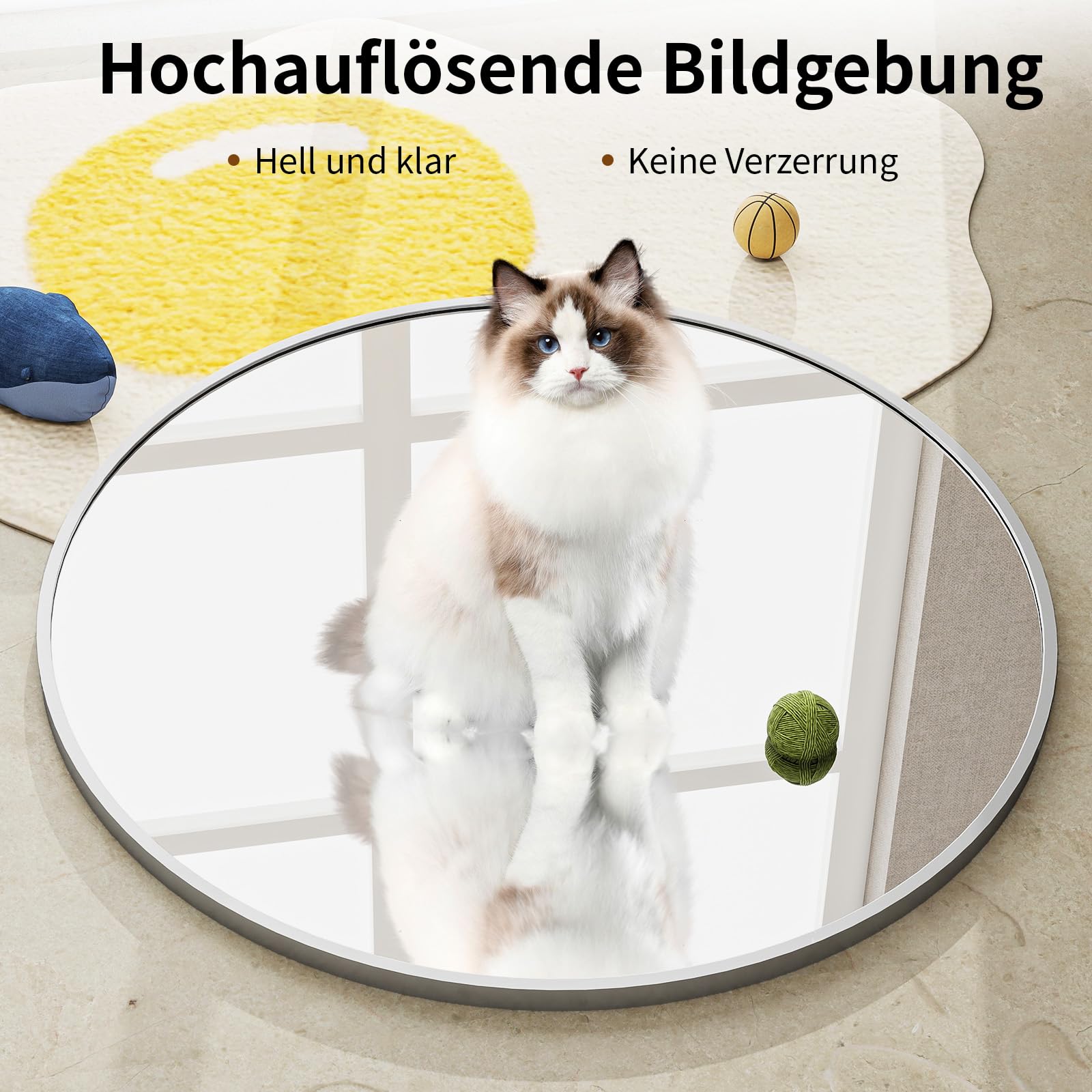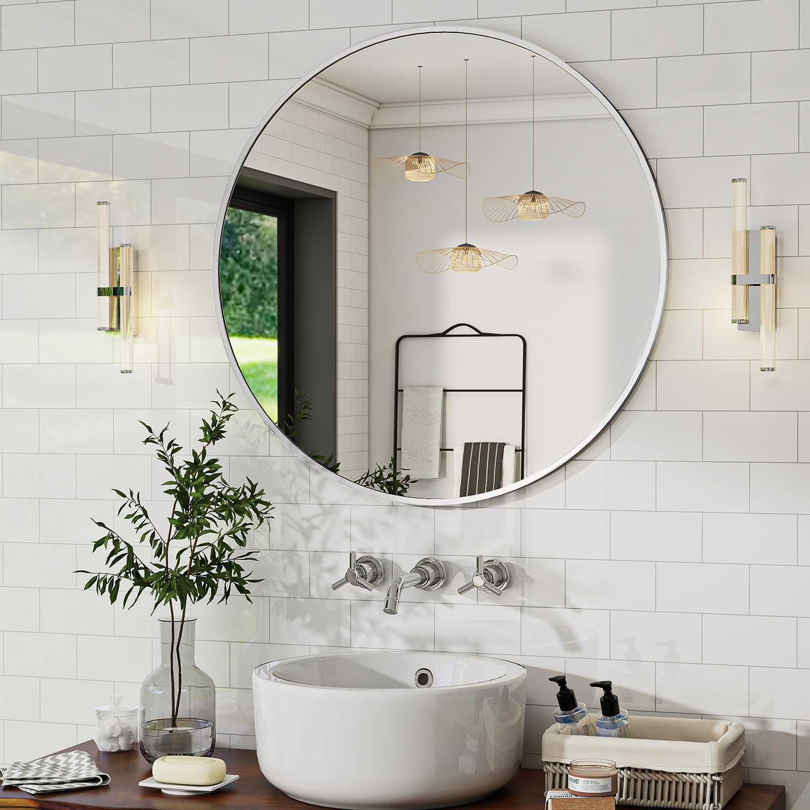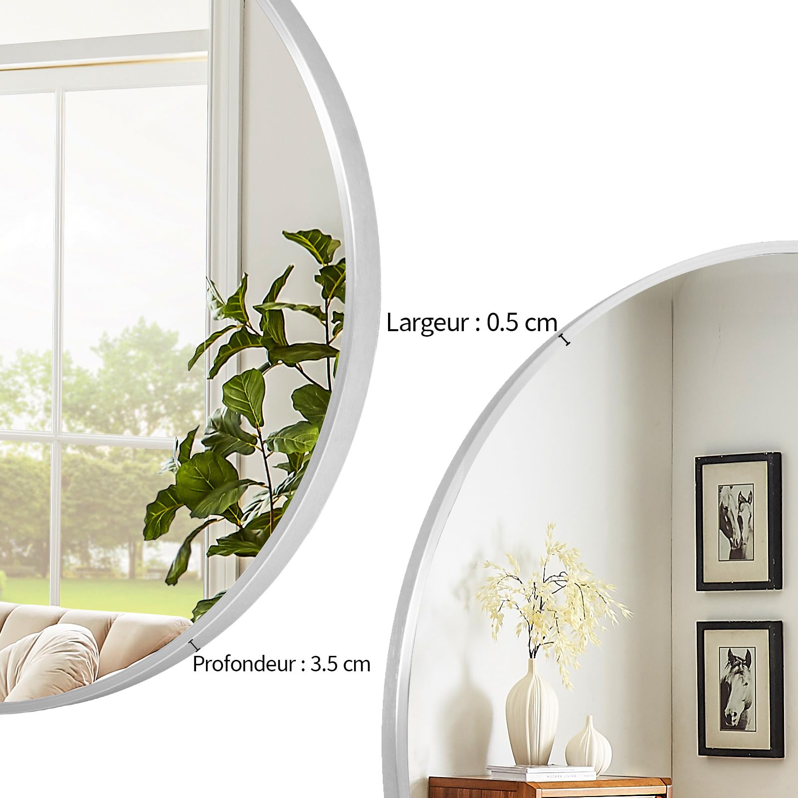 BEAUTYPEAK 50cm Runder Spiegel in Silber, Bruchsicherer Wandspiegel mit Aluminiumrahmen, Badezimmer Spiegel zum Aufhängen und Anlehnen, Rund Wandspiegel für Schlafzimmer, Bad, Wohnzimmer