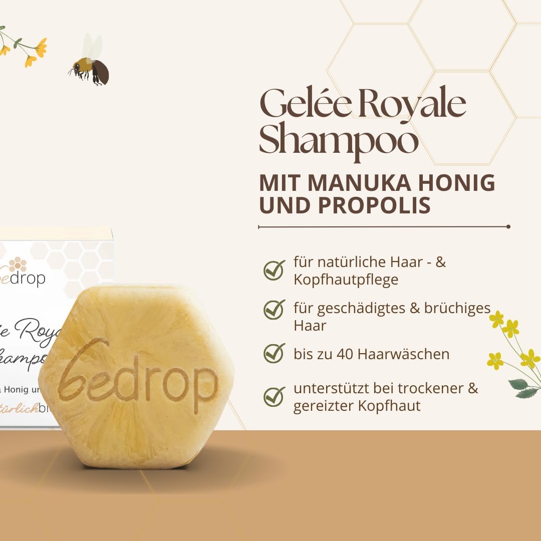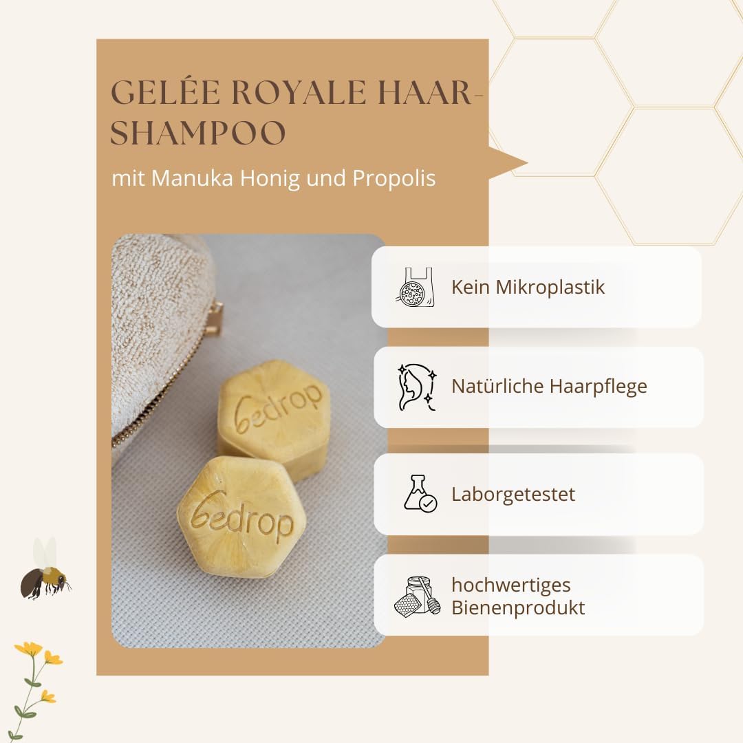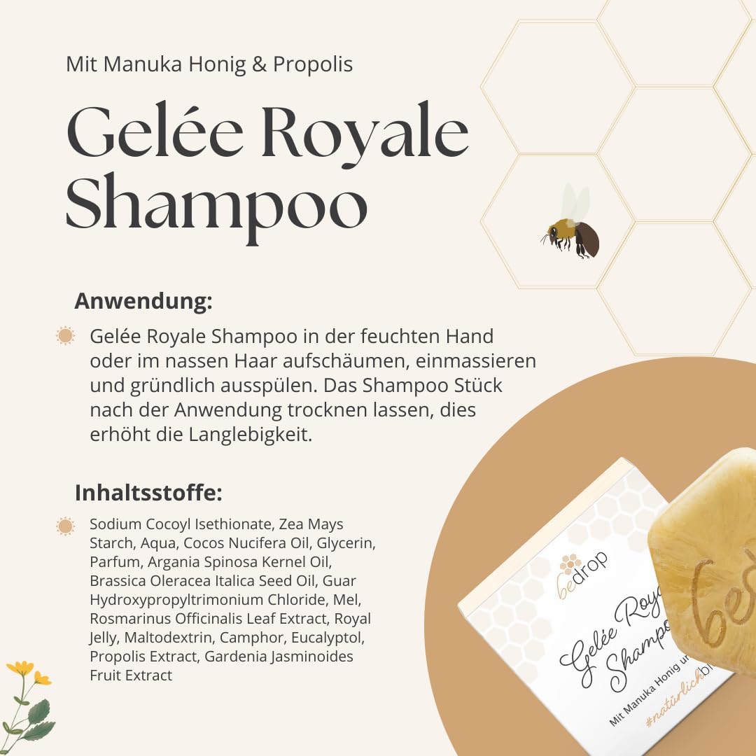 bedrop 3x Festes Shampoo mit Gelée Royale, Manuka Honig & Propolis für brüchiges, sanftes & gesundes Haar, feste Haarseife - 65g - 3er Set zum Sparpreis