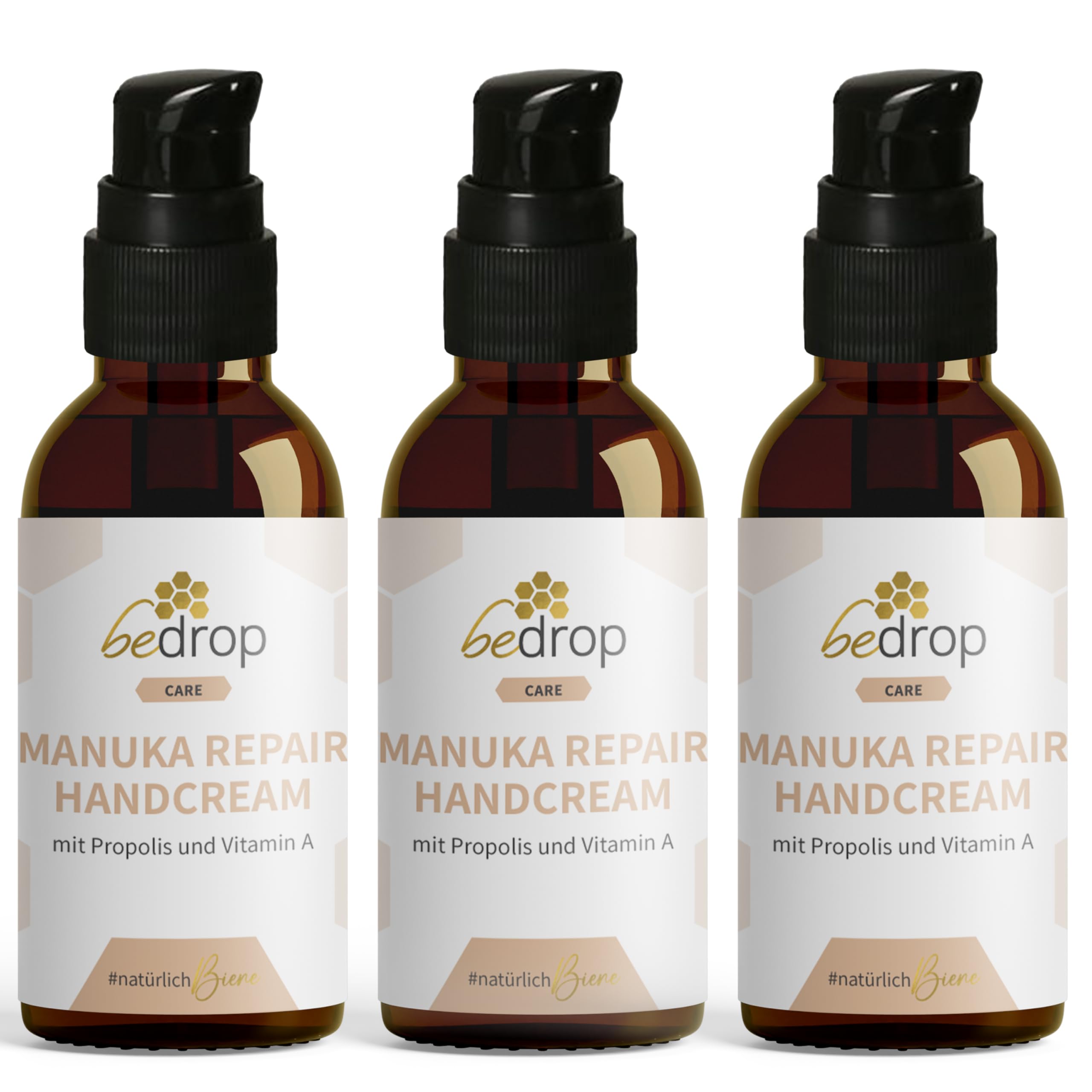 bedrop Manuka Repair Handcream feuchtigkeitsspendende Handcreme mit Manuka Honig, Bienenwachs, Propolis & Vitamin A bei beanspruchten & gerissenen Hände anwendbar - (3x 25ml Sparset)
