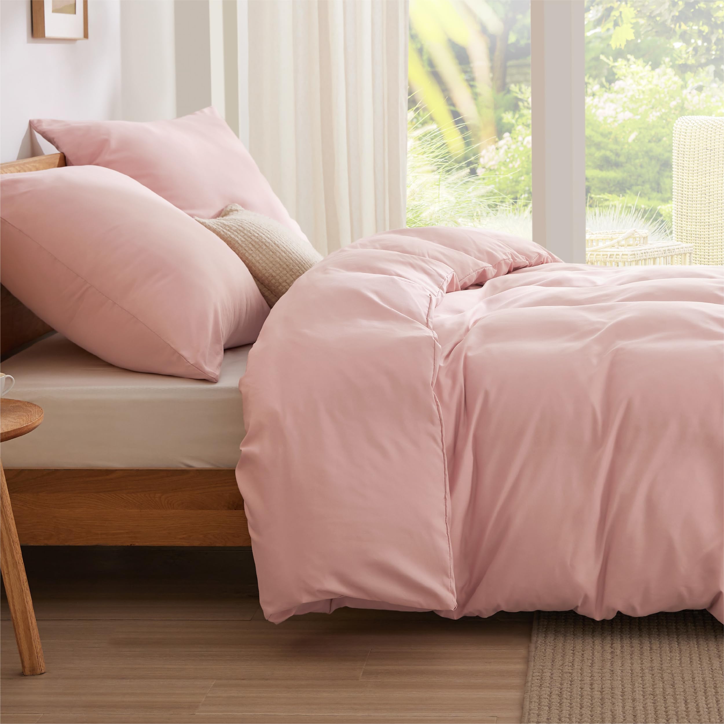BEDSURE Bettwäsche 200x200 Blasses Erröten - 1 Bettbezug 200x200 cm 2 Kissenbezüge 80X80 cm, ÖKO-TEX Bettwäsche-Sets Rosa Polyester Mikrofaser mit Reissverschluss