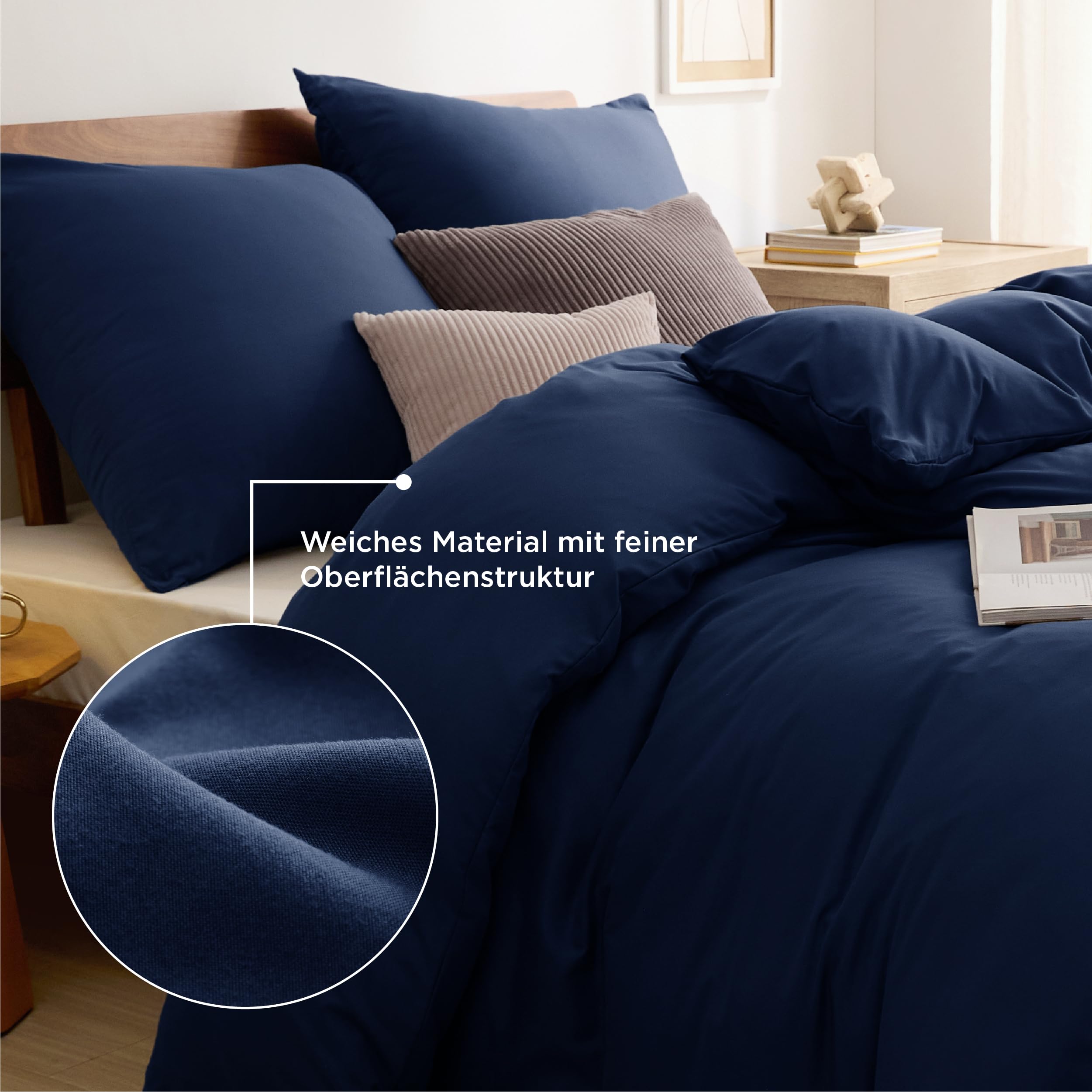 BEDSURE Bettwäsche 135x200 4teilig Marineblau - 2 Bettbezüge 135x200 cm + 2 Kissenbezüge 80X80 cm, ÖKO-TEX Bettwäsche-Sets Blau Polyester Mikrofaser mit Reissverschluss
