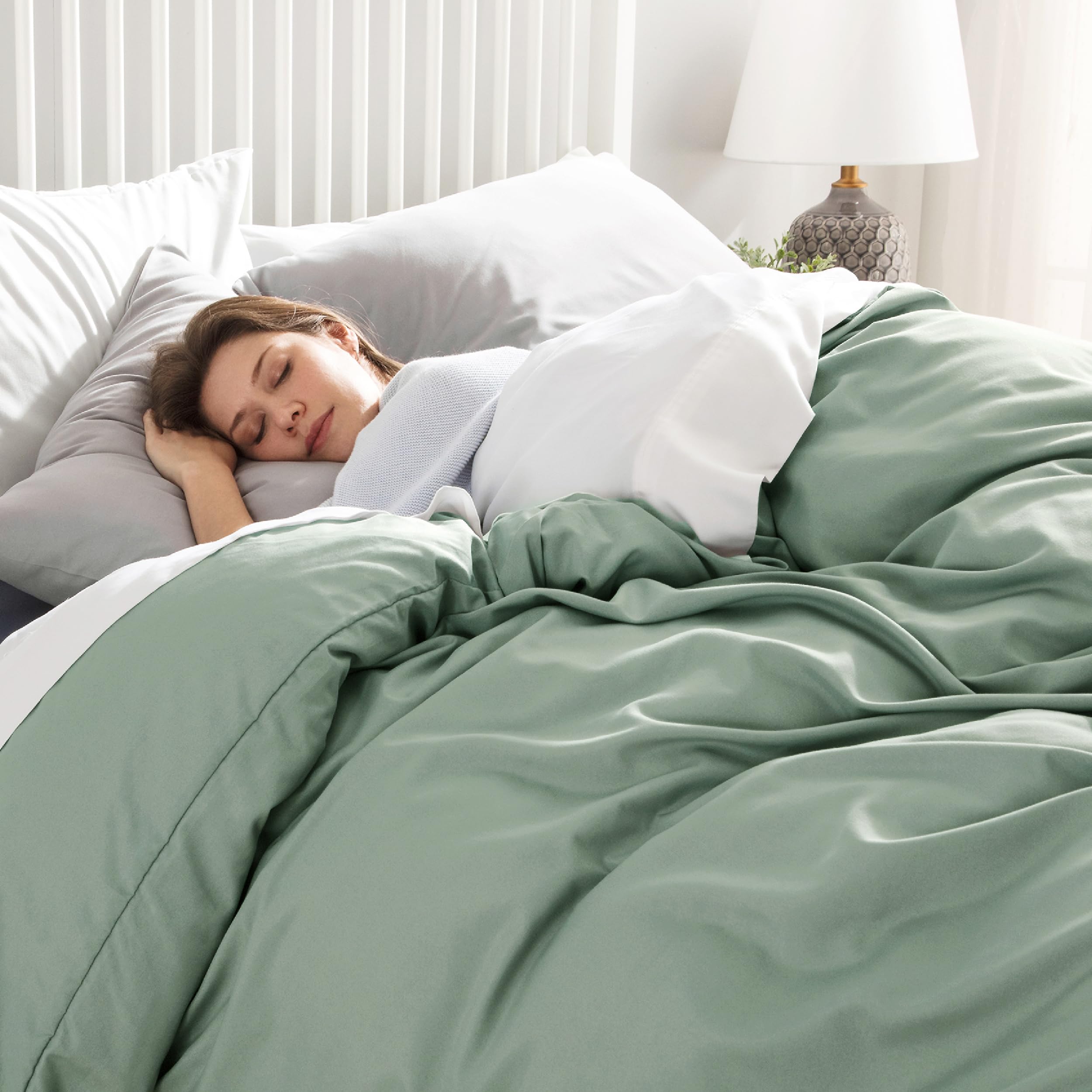 BEDSURE Bettwäsche 200x200 3teilig Salbeigrün - 1 Bettbezug 200x200 cm + 2 Kissenbezüge 80X80 cm, ÖKO-TEX Bettwäsche-Sets Grün Polyester Mikrofaser mit Reissverschluss
