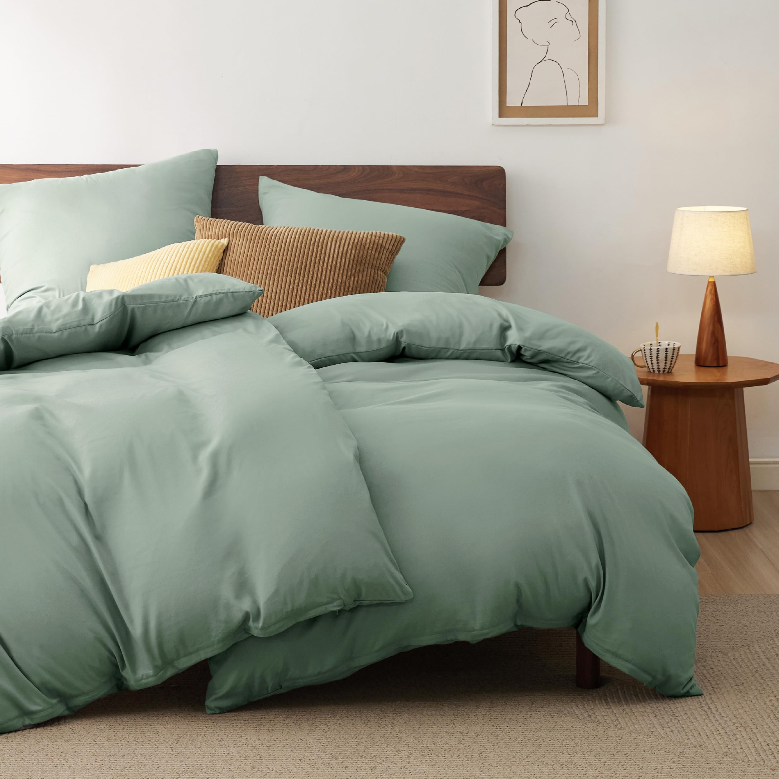 BEDSURE Bettwäsche 135x200 4teilig Salbeigrün - 2 Bettbezüge 135x200 cm + 2 Kissenbezüge 80X80 cm, ÖKO-TEX Bettwäsche-Sets Grün Polyester Mikrofaser mit Reissverschluss