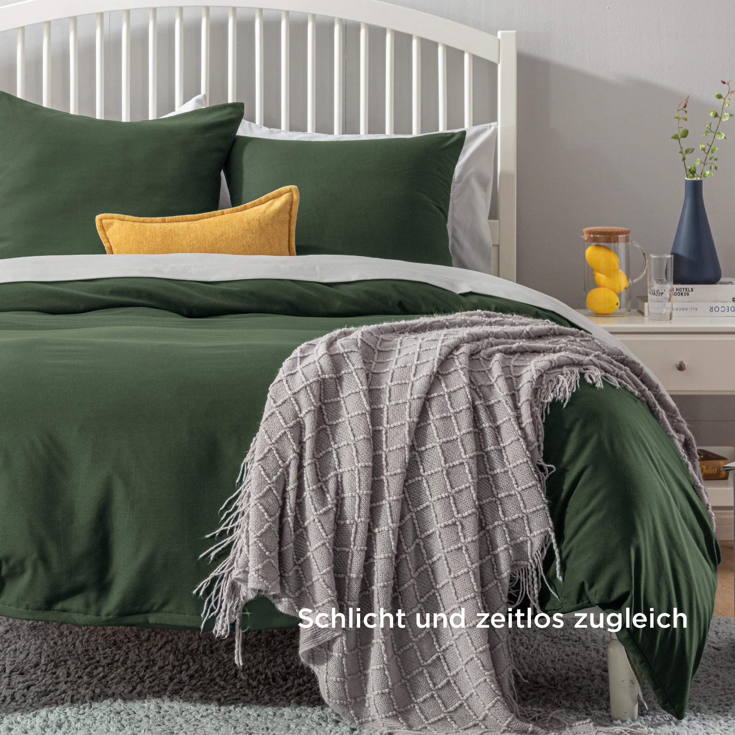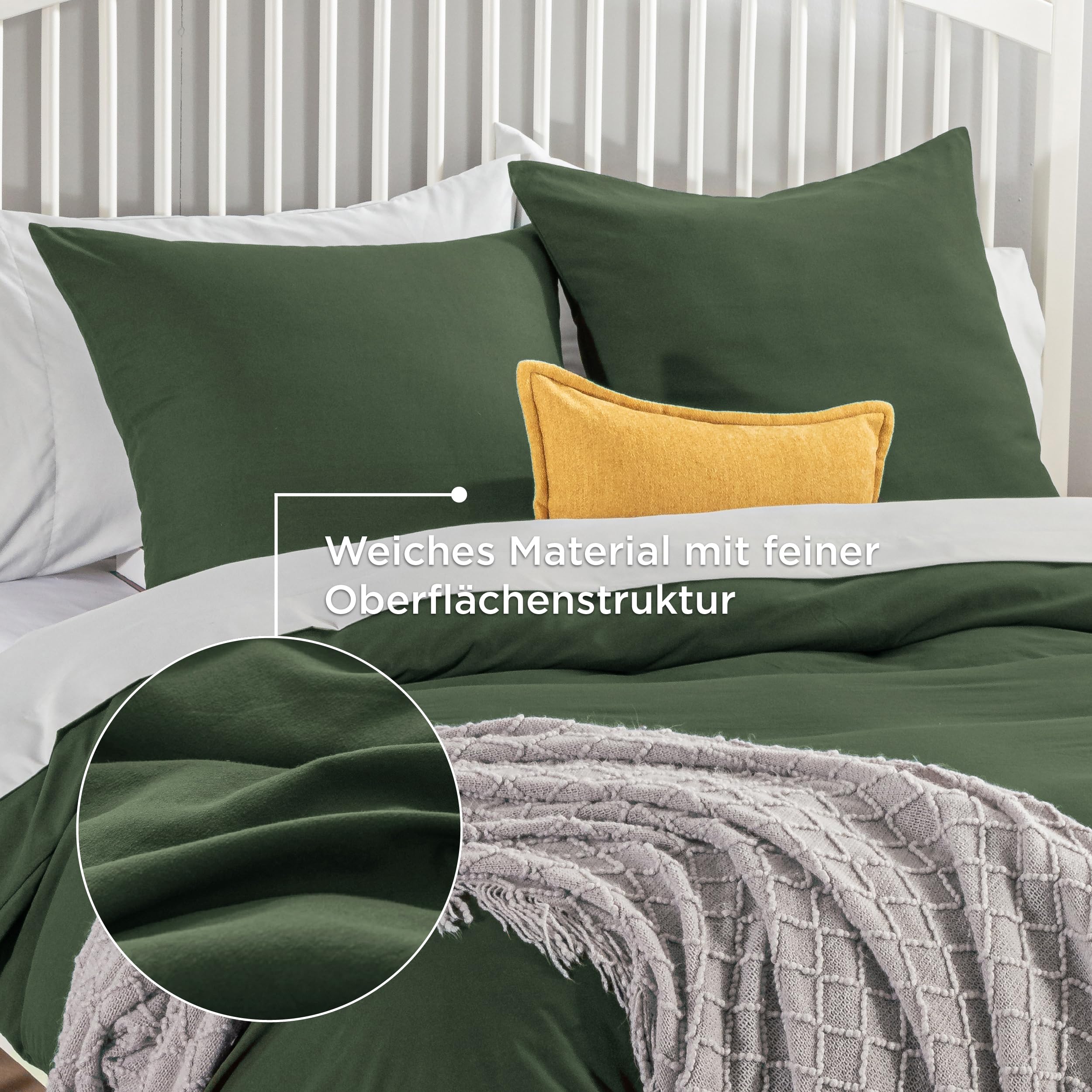 BEDSURE Bettwäsche 155x220 3teilig Grauolivgrün - 1 Bettbezug 155x220 cm + 2 Kissenbezüge 80X80 cm, ÖKO-TEX Bettwäsche-Sets Grün Polyester Mikrofaser mit Reissverschluss