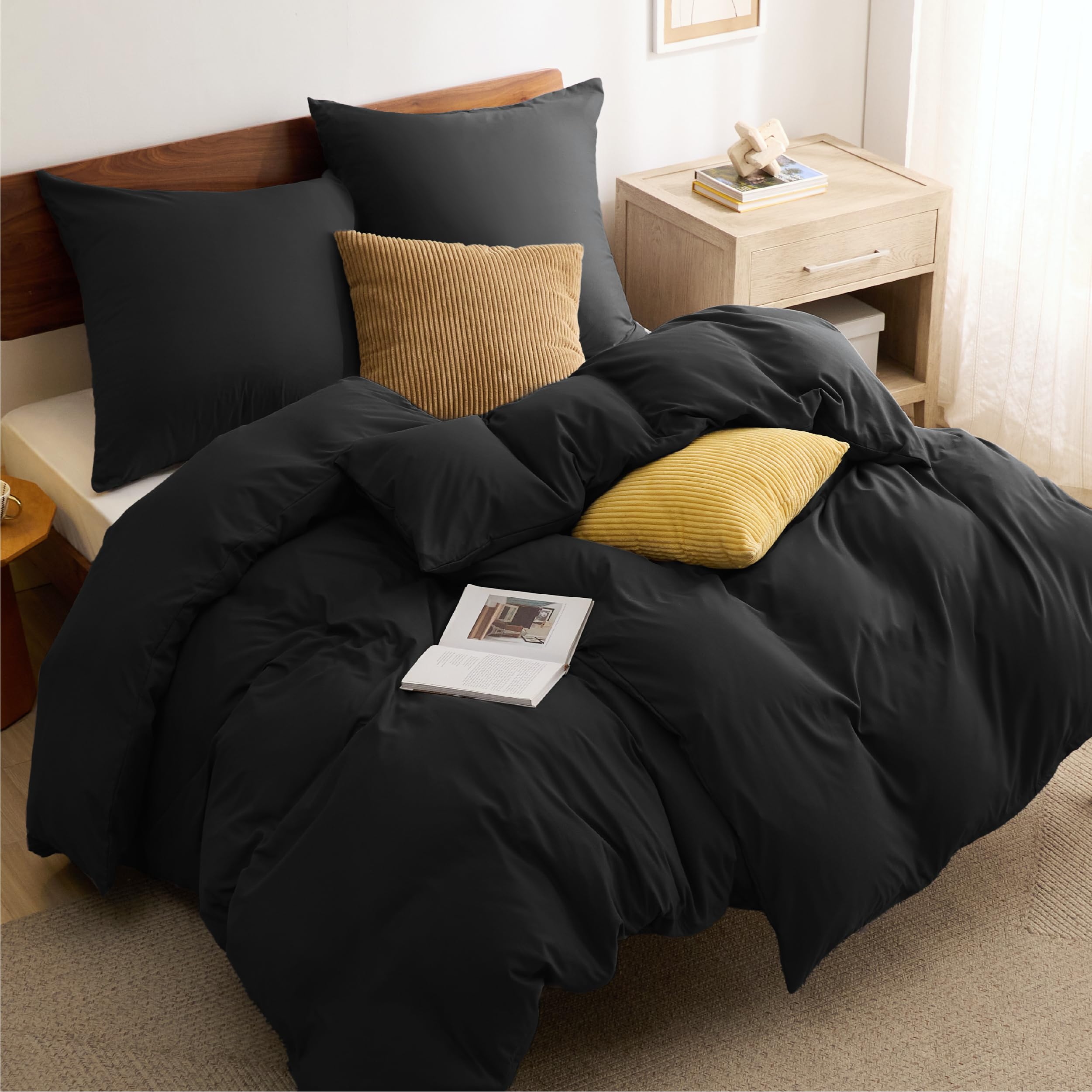 BEDSURE Bettwäsche 135x200 4teilig Schwarz - 2 Bettbezüge 135x200 cm + 2 Kissenbezüge 80X80 cm, ÖKO-TEX Bettwäsche-Sets Schwarz Polyester Mikrofaser mit Reissverschluss