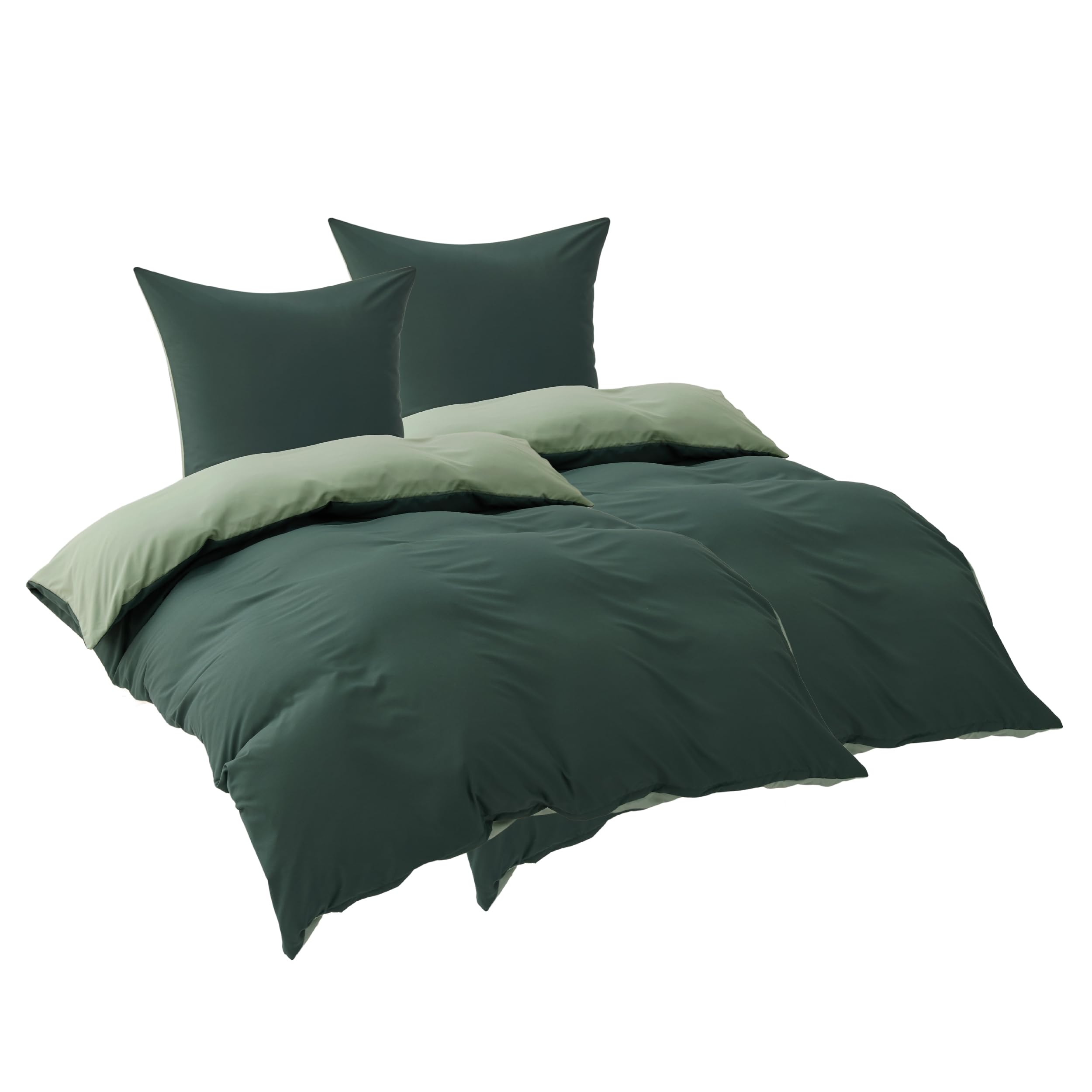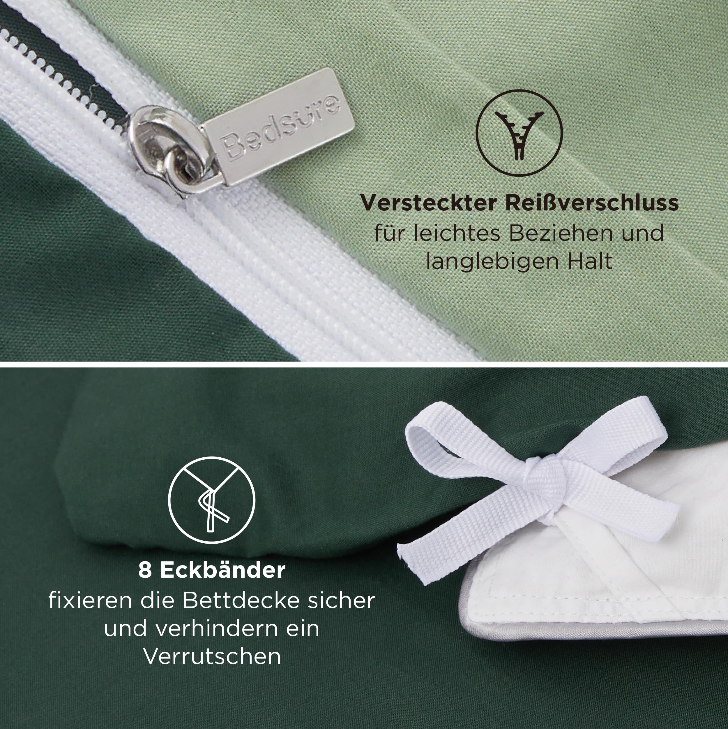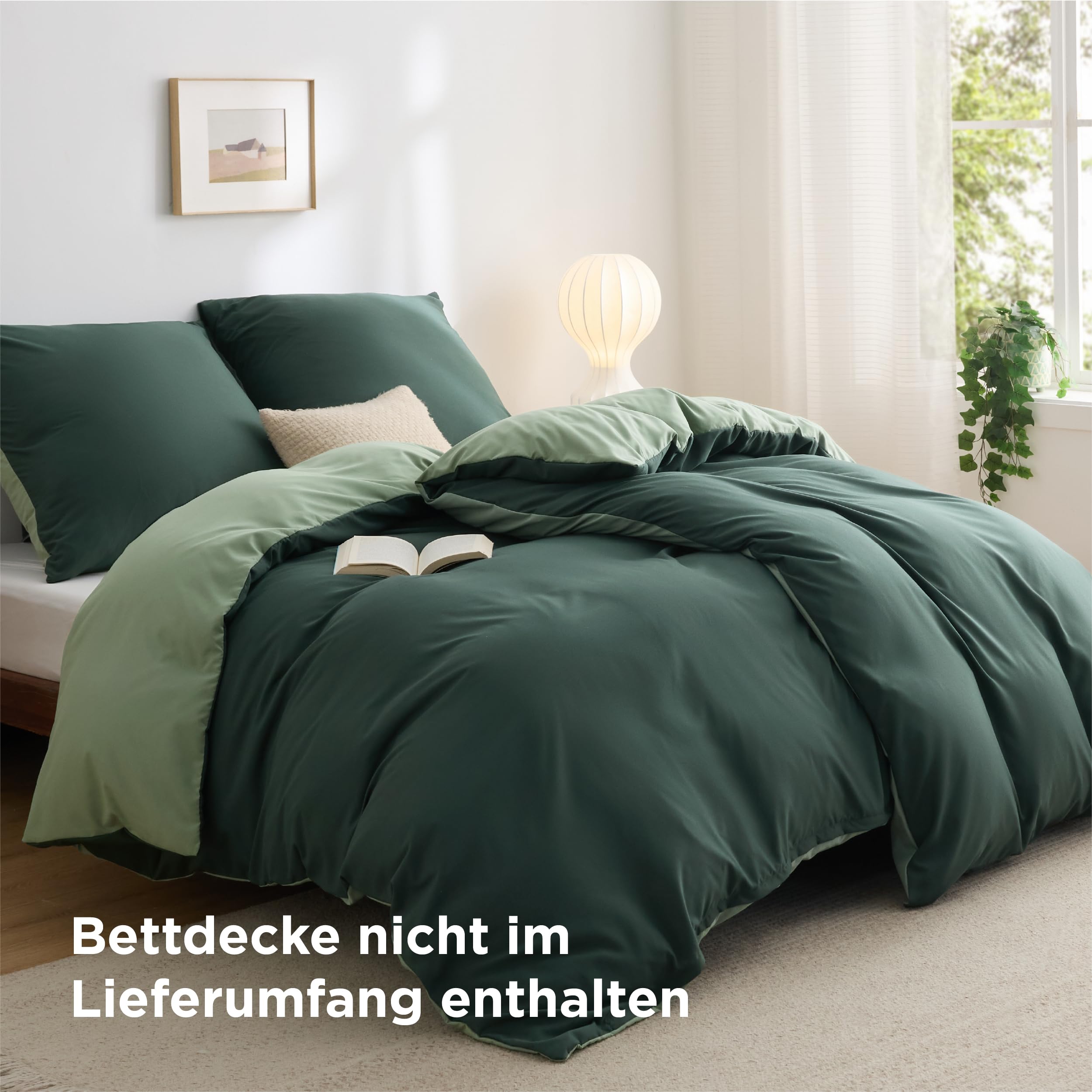 BEDSURE Bettwäsche 135x200 4teilig Salbeigrün/Dunkelgrün - Bettwäsche-Sets Bettbezug 135 x 200 cm 2er Set mit 2 Kissenbezüge 80x80 cm, Oeko-TEX Wendebettwäsche Bedding mit Reissverschluss