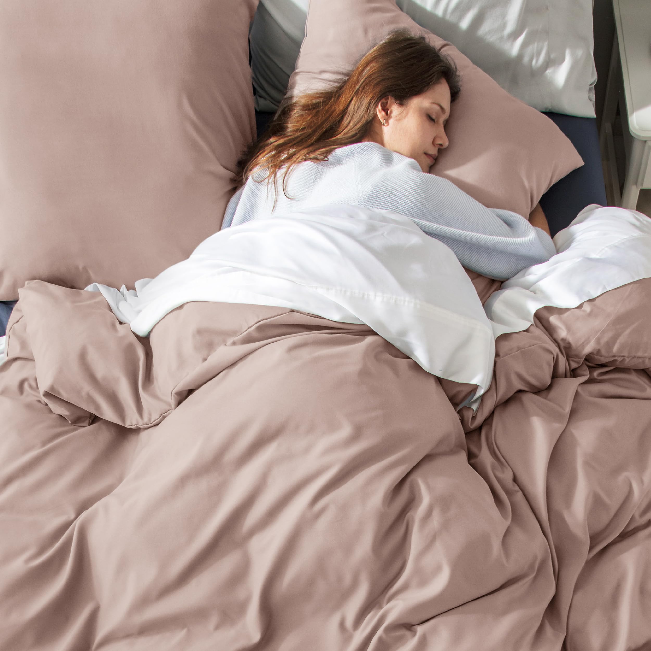 BEDSURE Bettwäsche 200x200 3teilig Rose - 1 Bettbezug 200x200 cm 2 Kissenbezüge 80X80 cm, ÖKO-TEX Bettwäsche-Sets Adobe Rosa Polyester Mikrofaser mit Reissverschluss