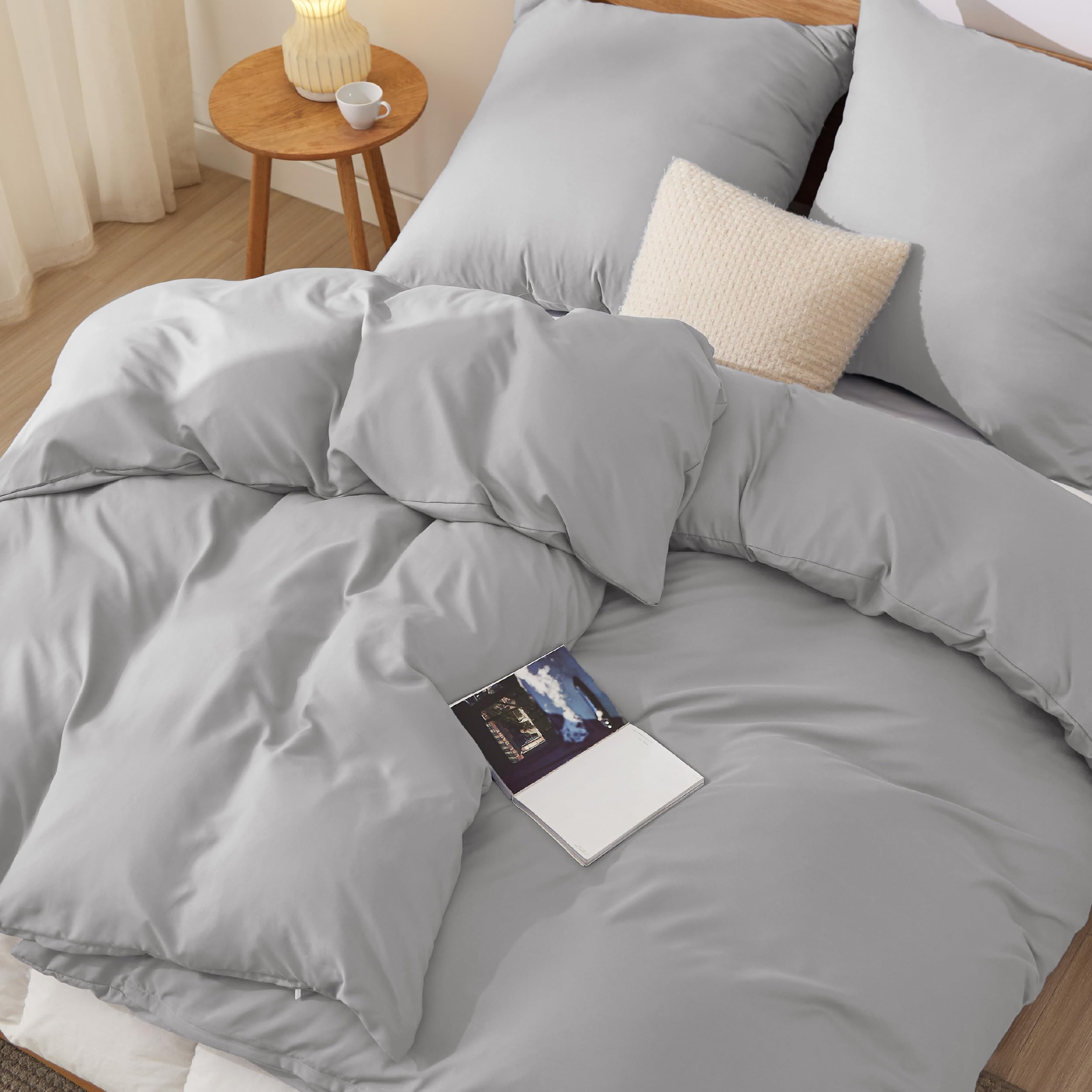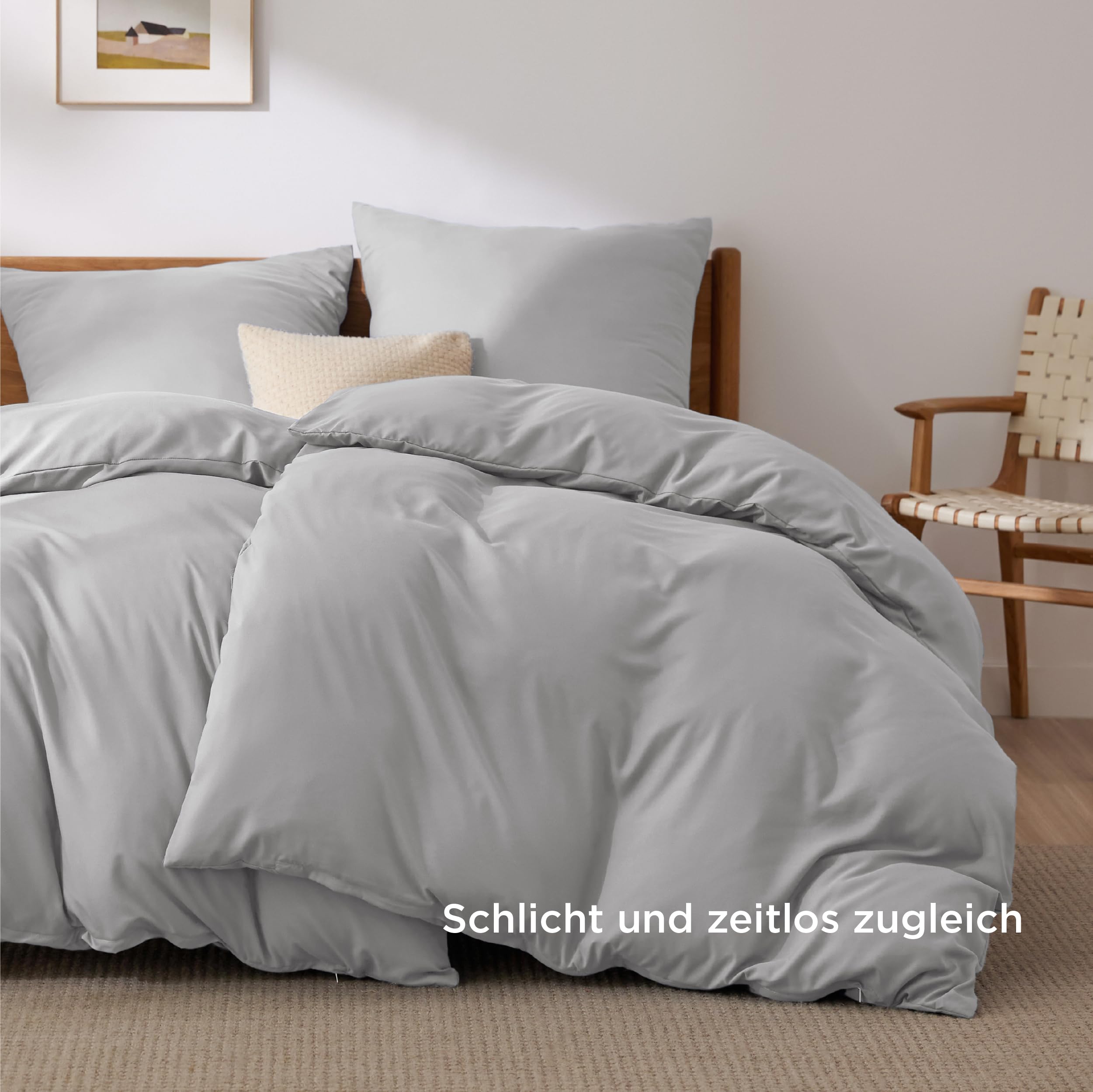 BEDSURE Bettwäsche 135x200 4teilig Silbergrau - 2 Bettbezüge 135x200 cm + 2 Kissenbezüge 80X80 cm, ÖKO-TEX Bettwäsche-Sets Grau Polyester Mikrofaser mit Reissverschluss