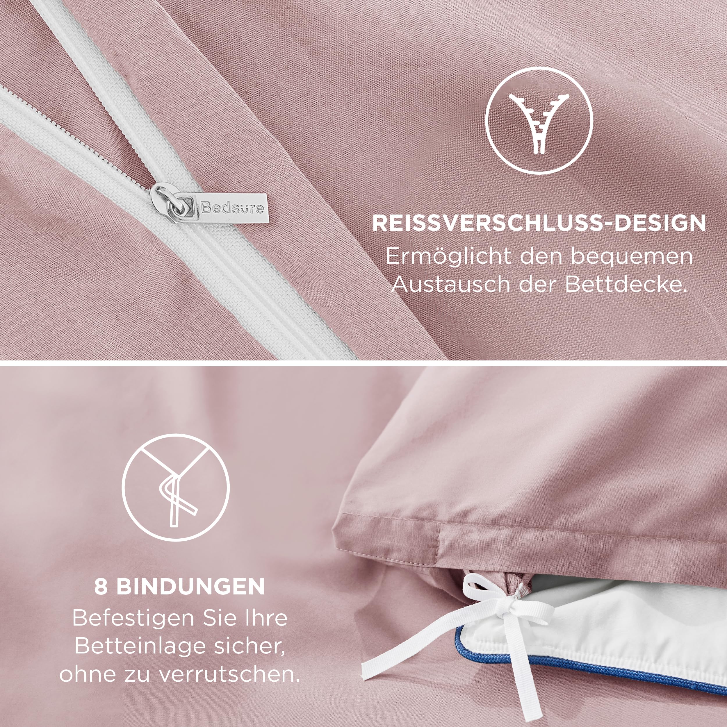 BEDSURE Bettwäsche 135x200 Baumwolle 4teilig - Bettwäsche-Sets Rosa Bettbezug 2er Set mit 2 Kissenbezüge 80x80 cm, Oeko-TEX Bedding Adobe Rose mit Reissverschluss