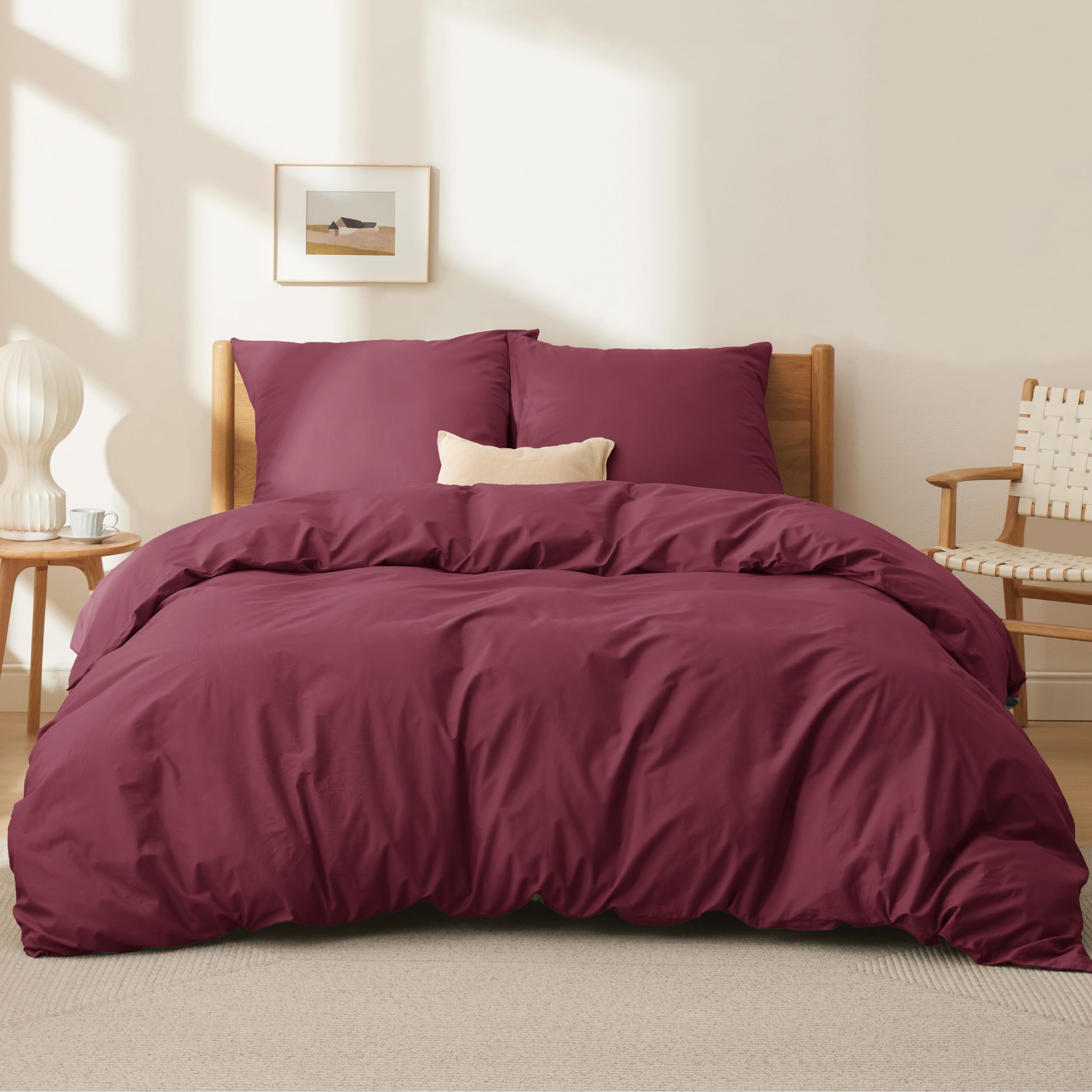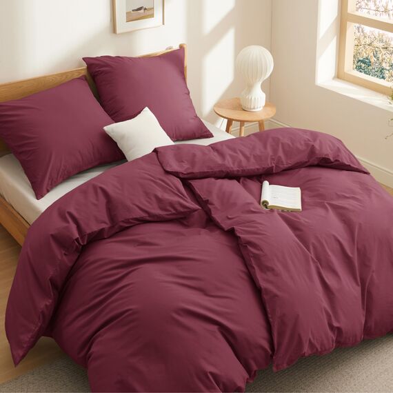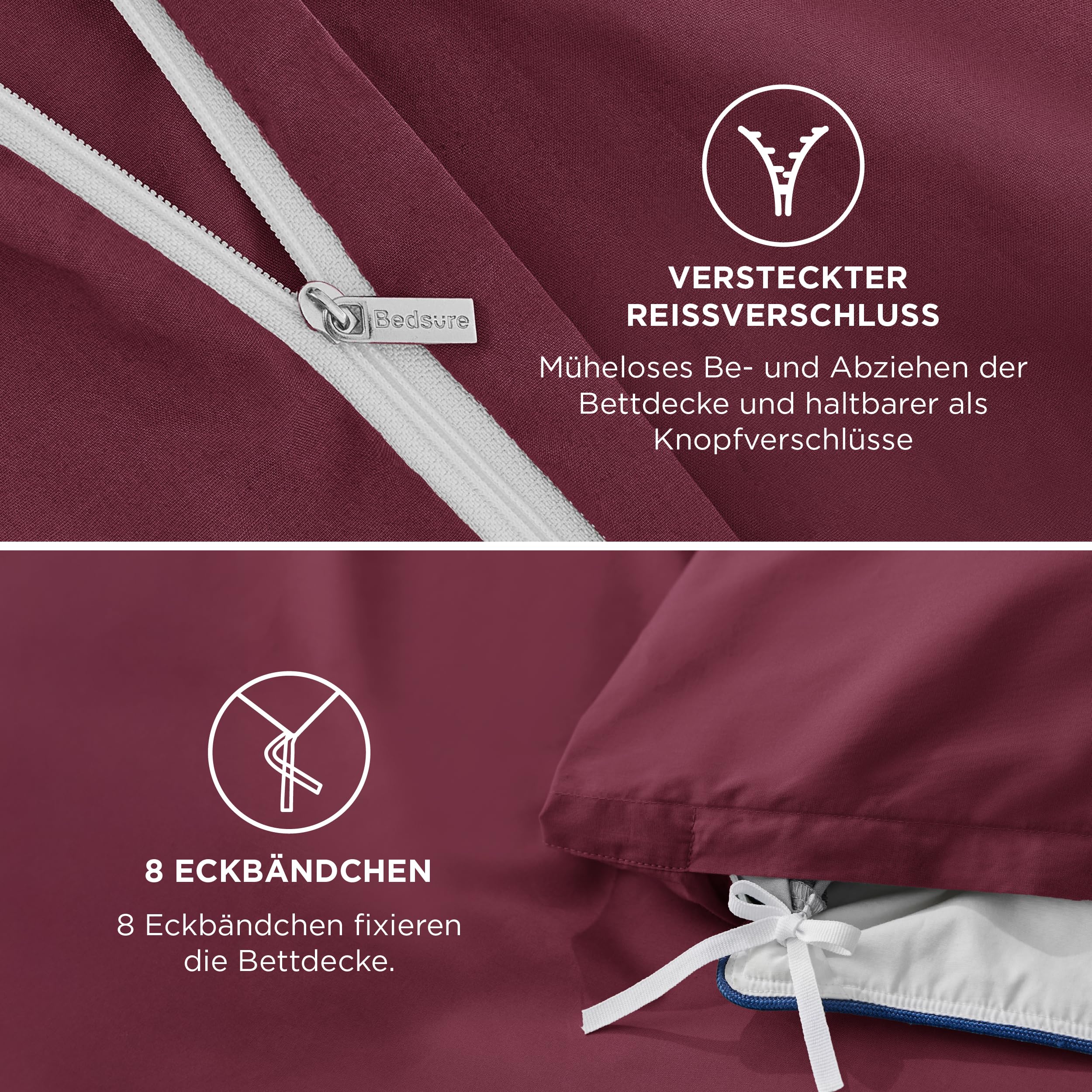 BEDSURE Bettwäsche 135x200 Baumwolle 4teilig - Bettwäsche-Sets Weinrot Bettbezug 2er Set mit 2 Kissenbezüge 80x80 cm, Oeko-TEX Bedding Rot mit Reissverschluss