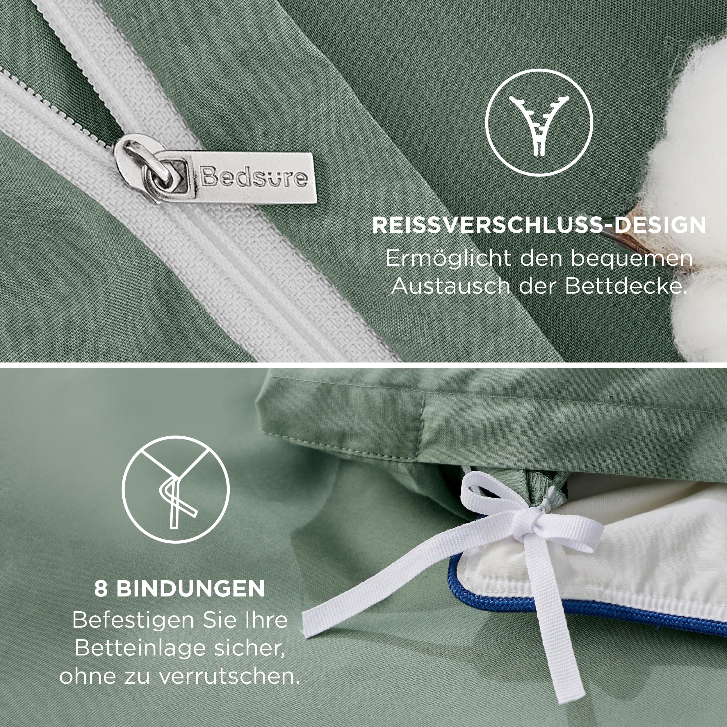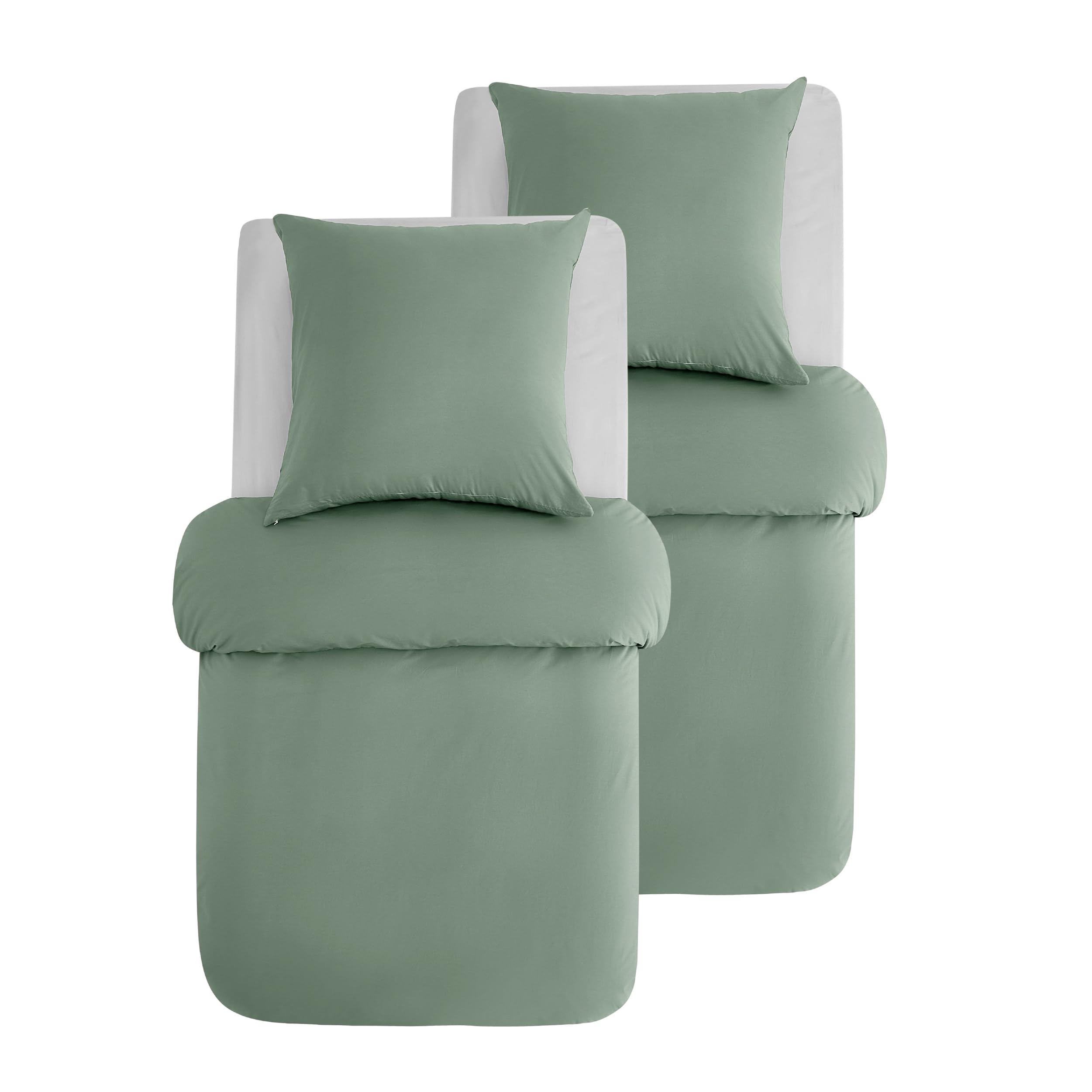 BEDSURE Bettwäsche 135x200 Baumwolle 4teilig - Bettwäsche-Sets Grün Bettbezug 2er Set mit 2 Kissenbezüge 80x80 cm, Oeko-TEX Bedding Salbeigrün mit Reissverschluss
