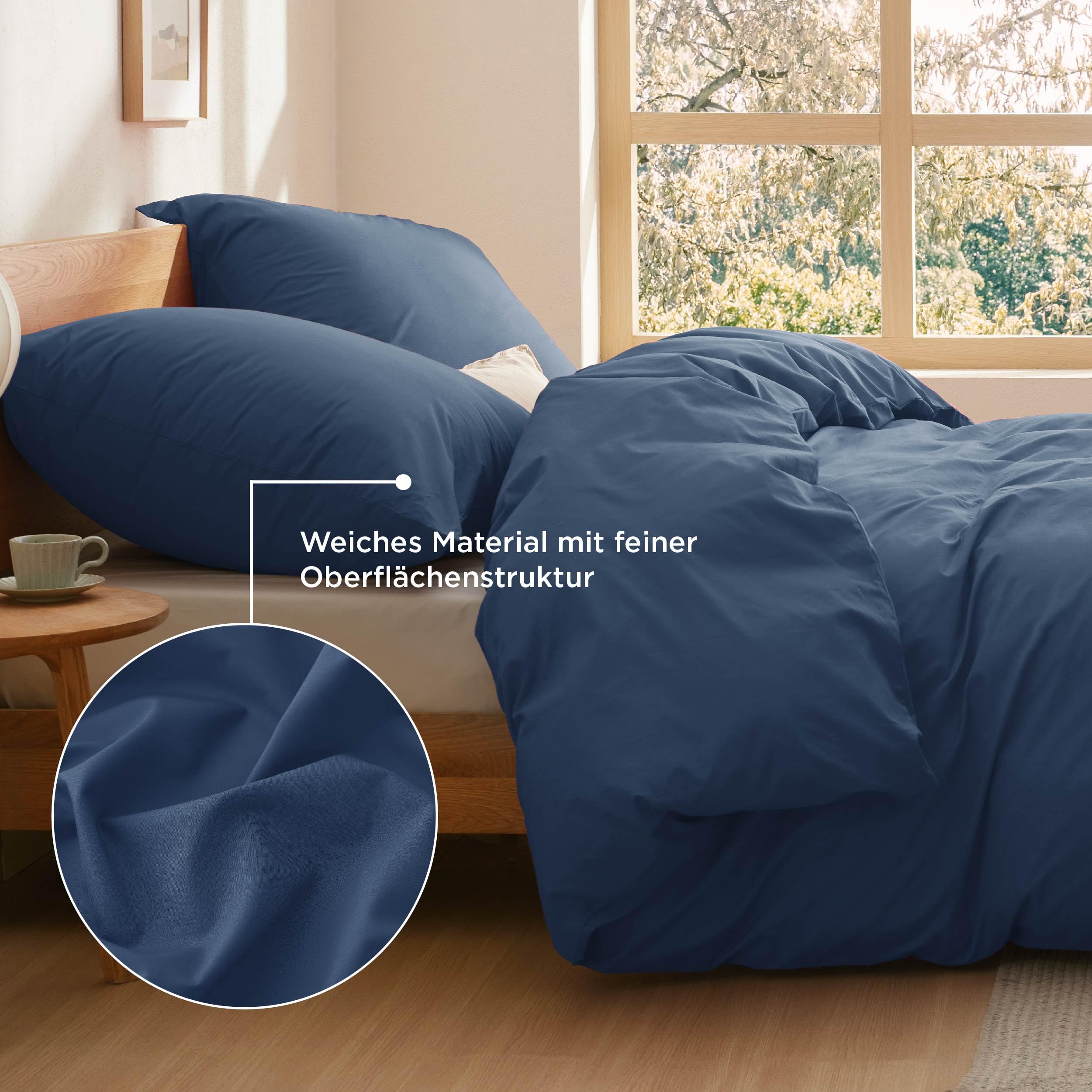 BEDSURE Bettwäsche 200x200 Baumwolle Blau - Bettwäsche-Sets 200 x 200 cm Bettbezug 3teilig mit 2 Kissenbezüge 80x80 cm, Oeko-TEX Bedding mit Reissverschluss