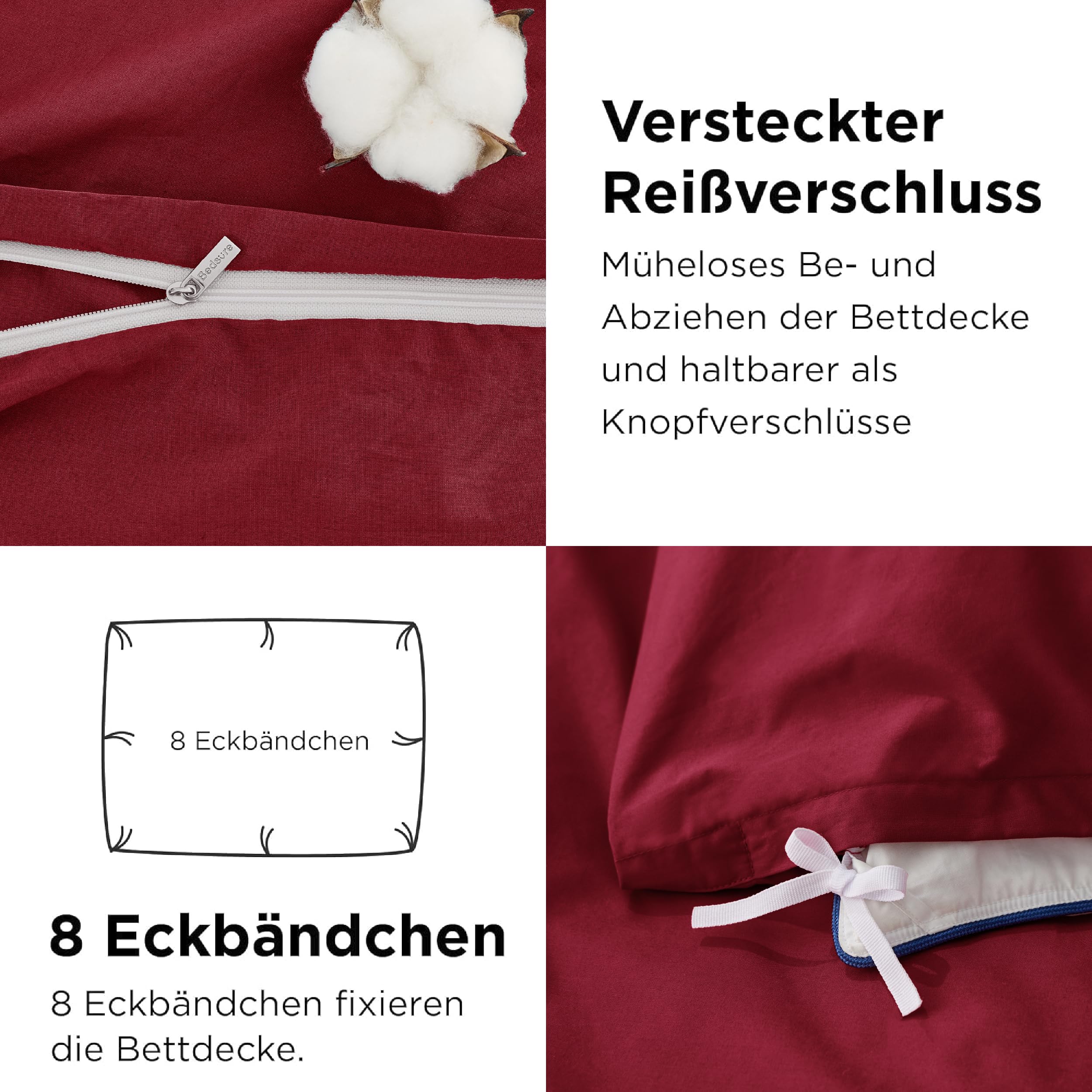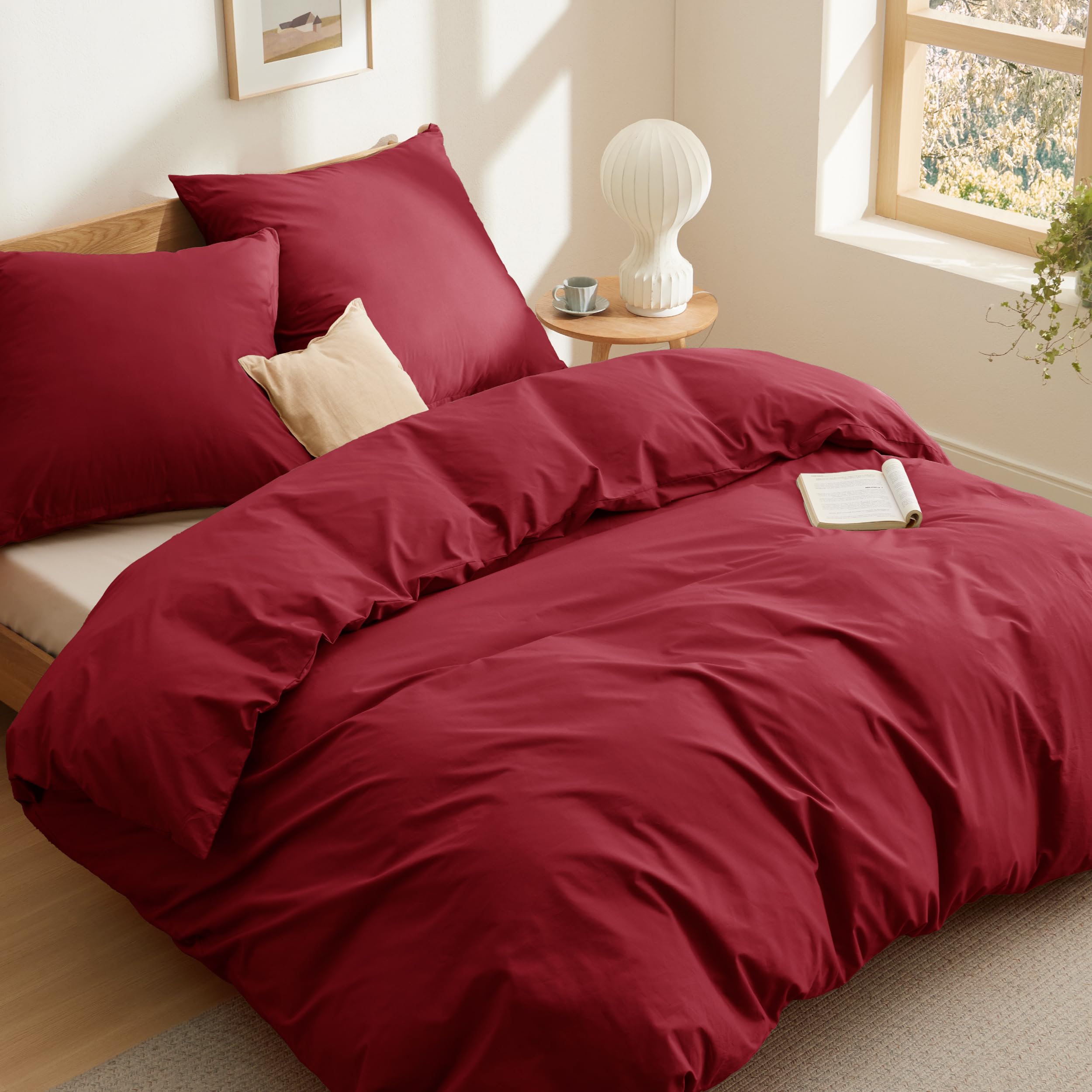 Bedsure Bettwäsche 200x200 Baumwolle Weinrot - Bettwäsche-Sets 200 x 200 cm Bettbezug 3teilig mit 2 Kissenbezüge 80x80 cm, OEKO-TEX Bettwäsche Rot mit Reissverschluss