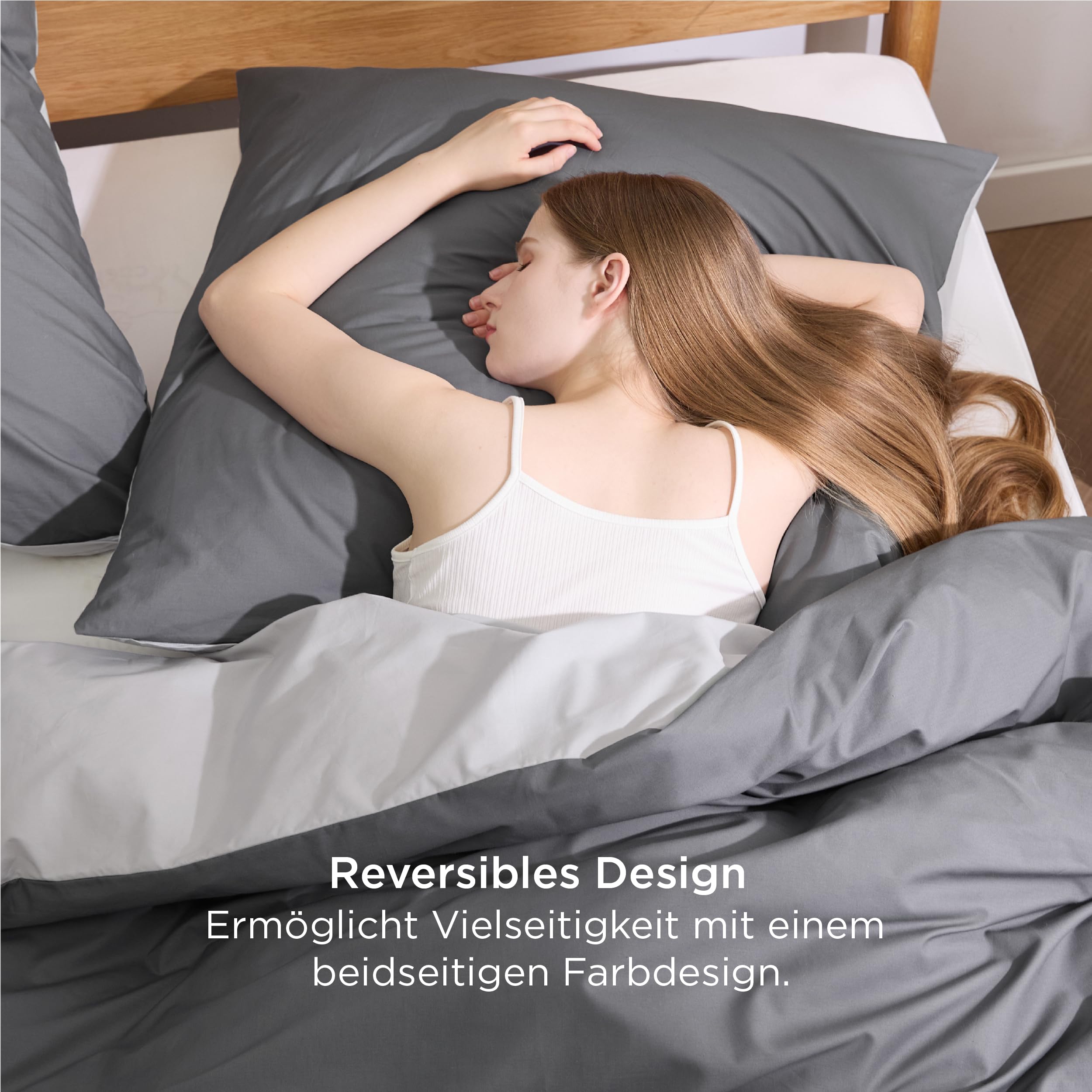 BEDSURE Bettwäsche 135x200 Anthrazit Grau - Baumwolle Bettwäsche-Sets 135 x 200 cm Wendebettwäsche 2teilig mit Kissenbezug 80x80 cm, Oeko-TEX Zweifarbiger Bettbezug mit Reissverschluss