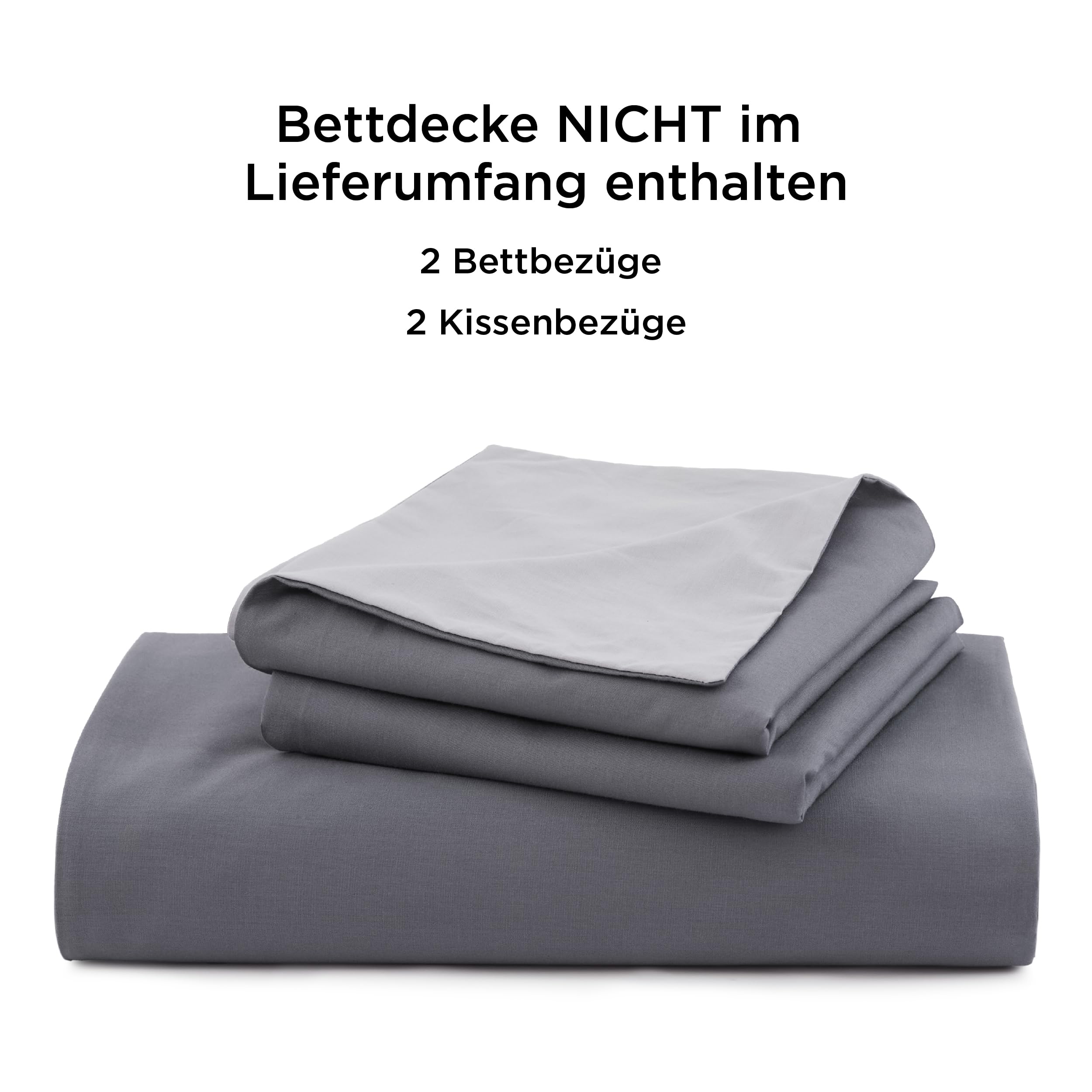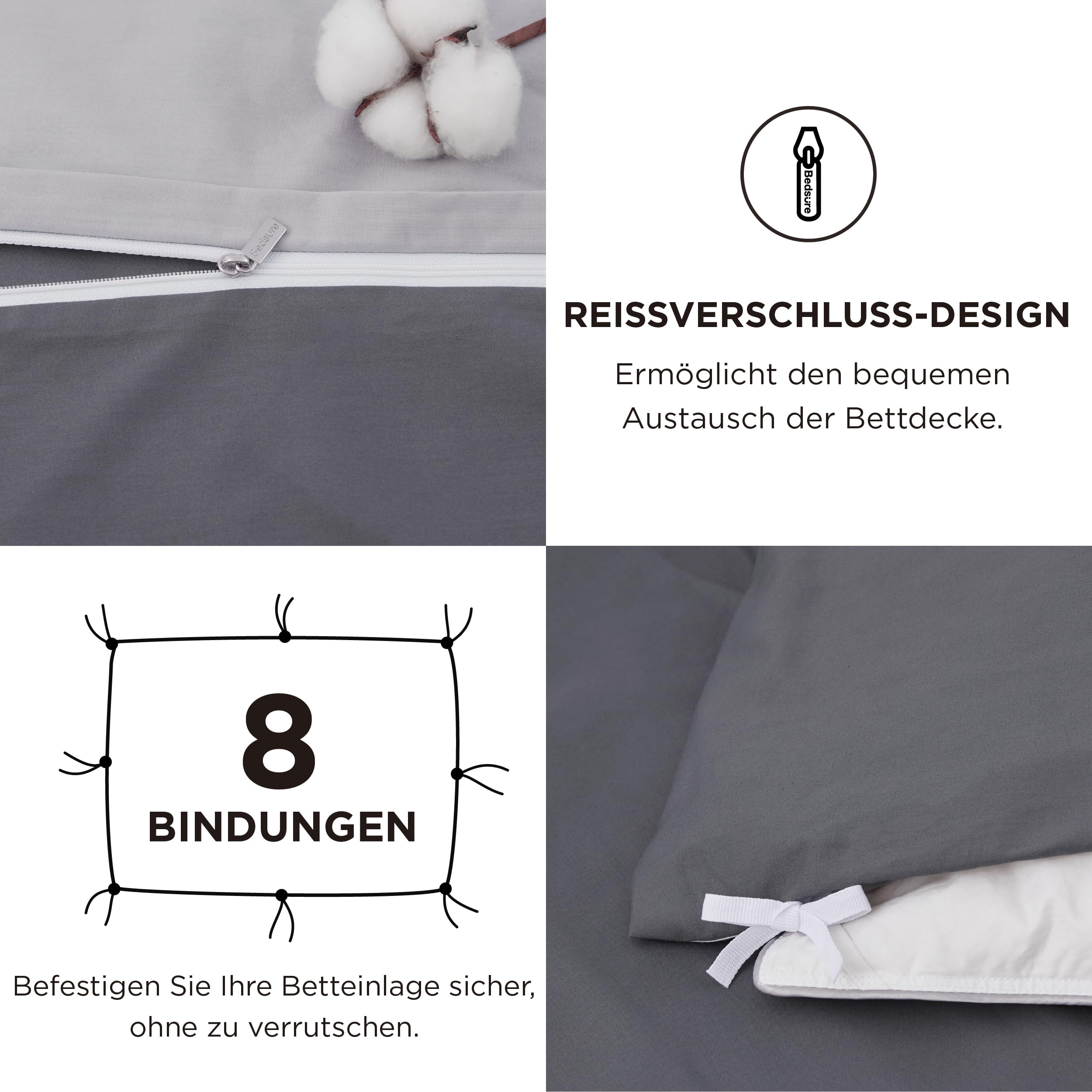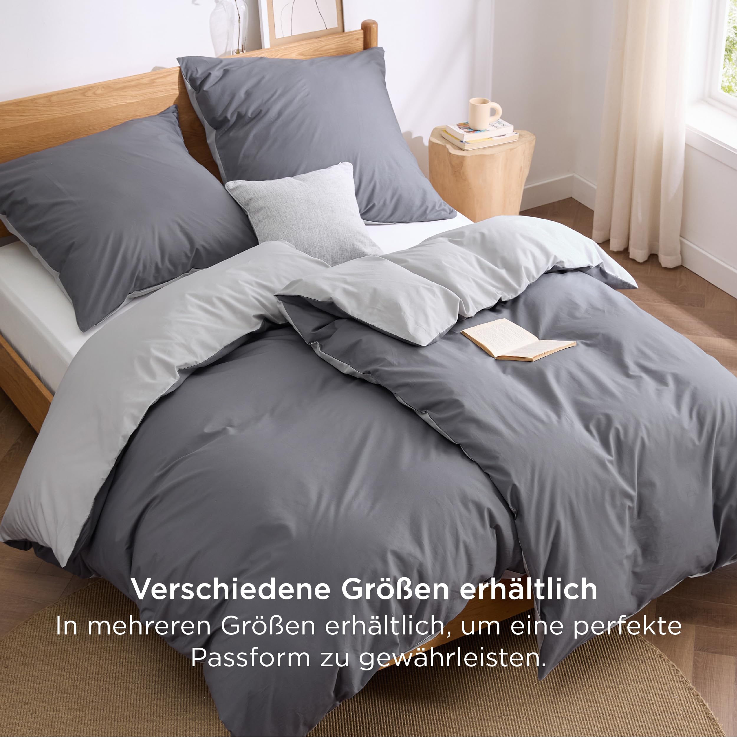 BEDSURE Bettwäsche 135x200 Baumwolle 4teilig - Bettwäsche-Sets Anthrazit Grau Wendebettwäsche 2er Set mit 2 Kissenbezüge 80x80 cm, Oeko-TEX Zweifarbiger Bettbezug mit Reissverschluss