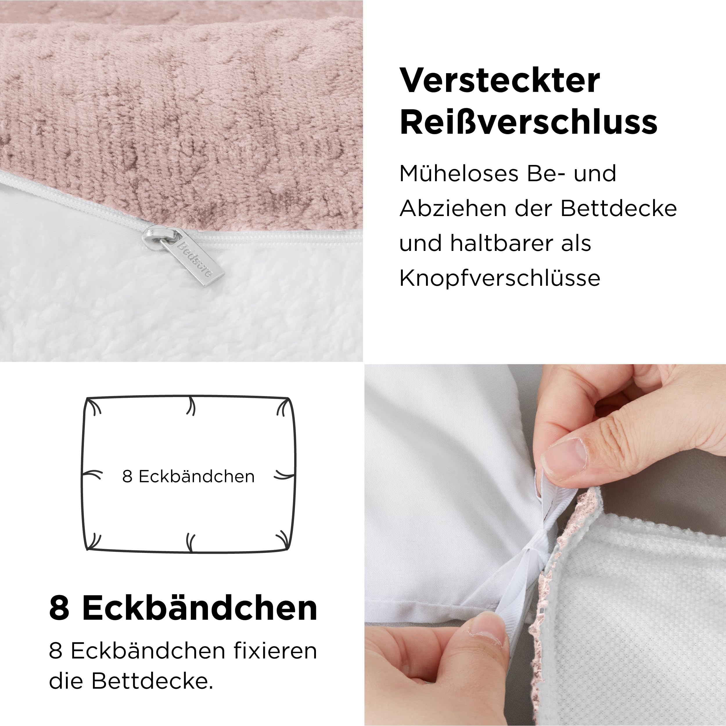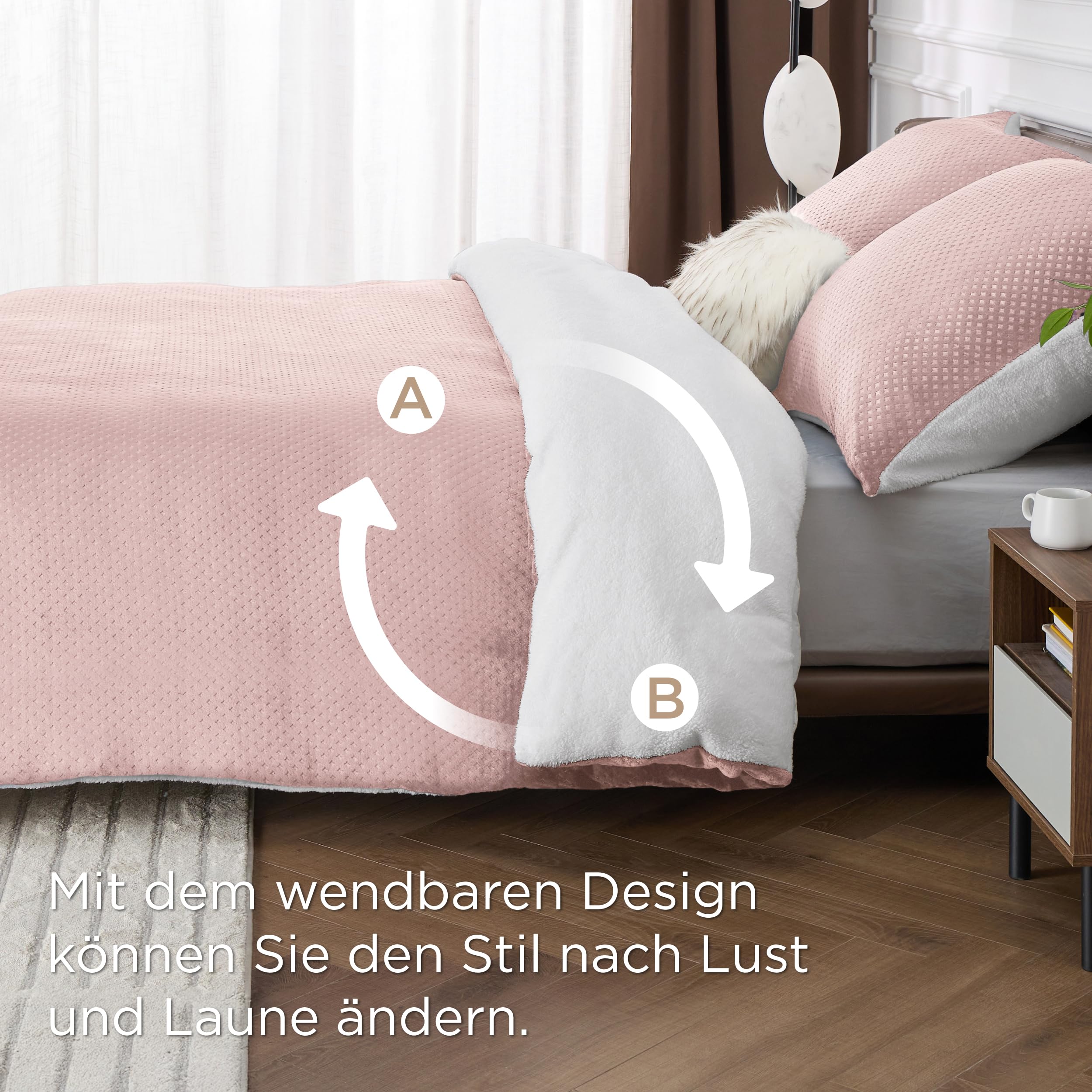 BEDSURE Flauschige Bettwäsche 200x200 Rosa - Winter Bettbezug Fleece mit 2 Kissenbezüge 80x80 cm, Warme Bettwäsche-Sets mit Reissverschluss, Kuschel Waffelpique Winterbettwäsche für Doppelbett