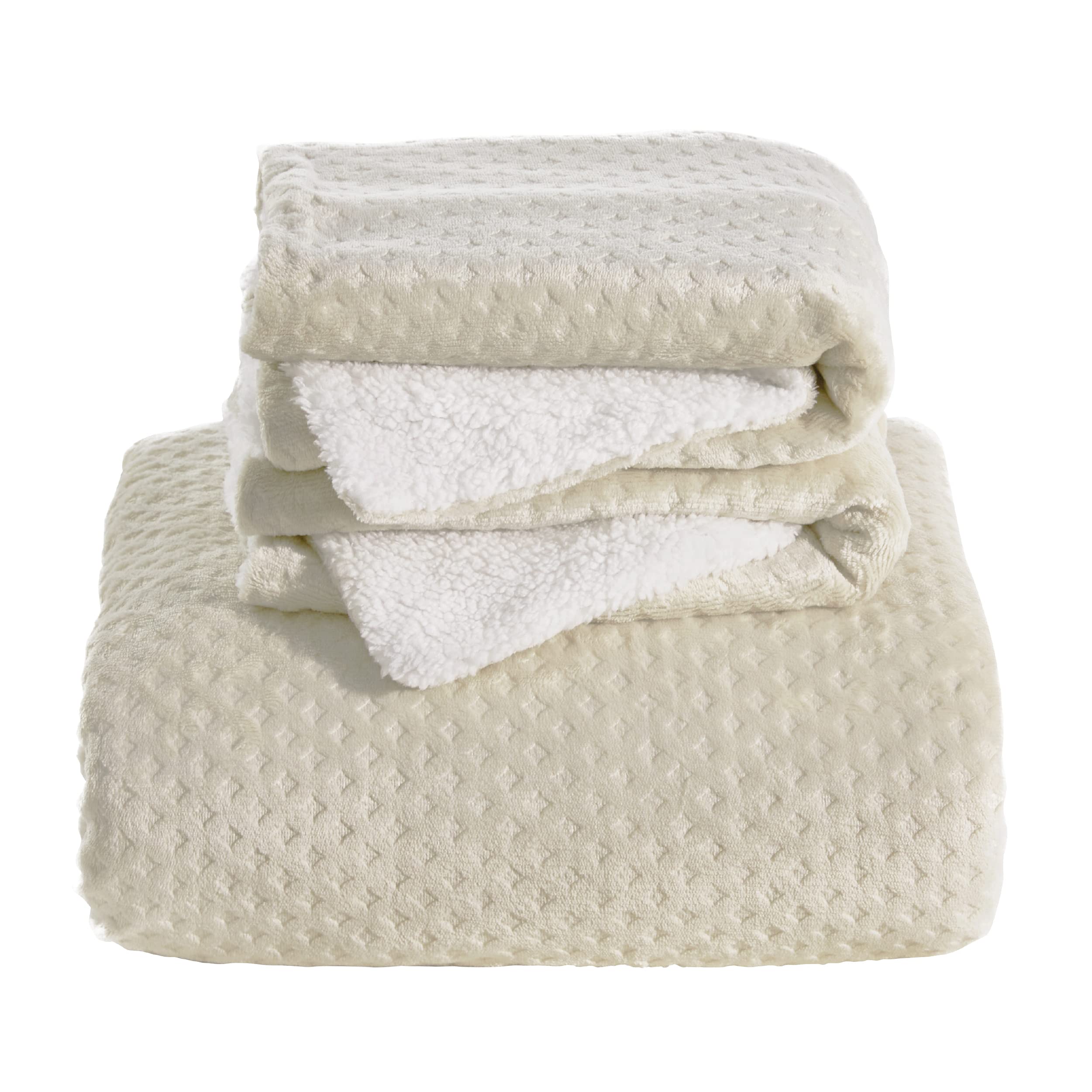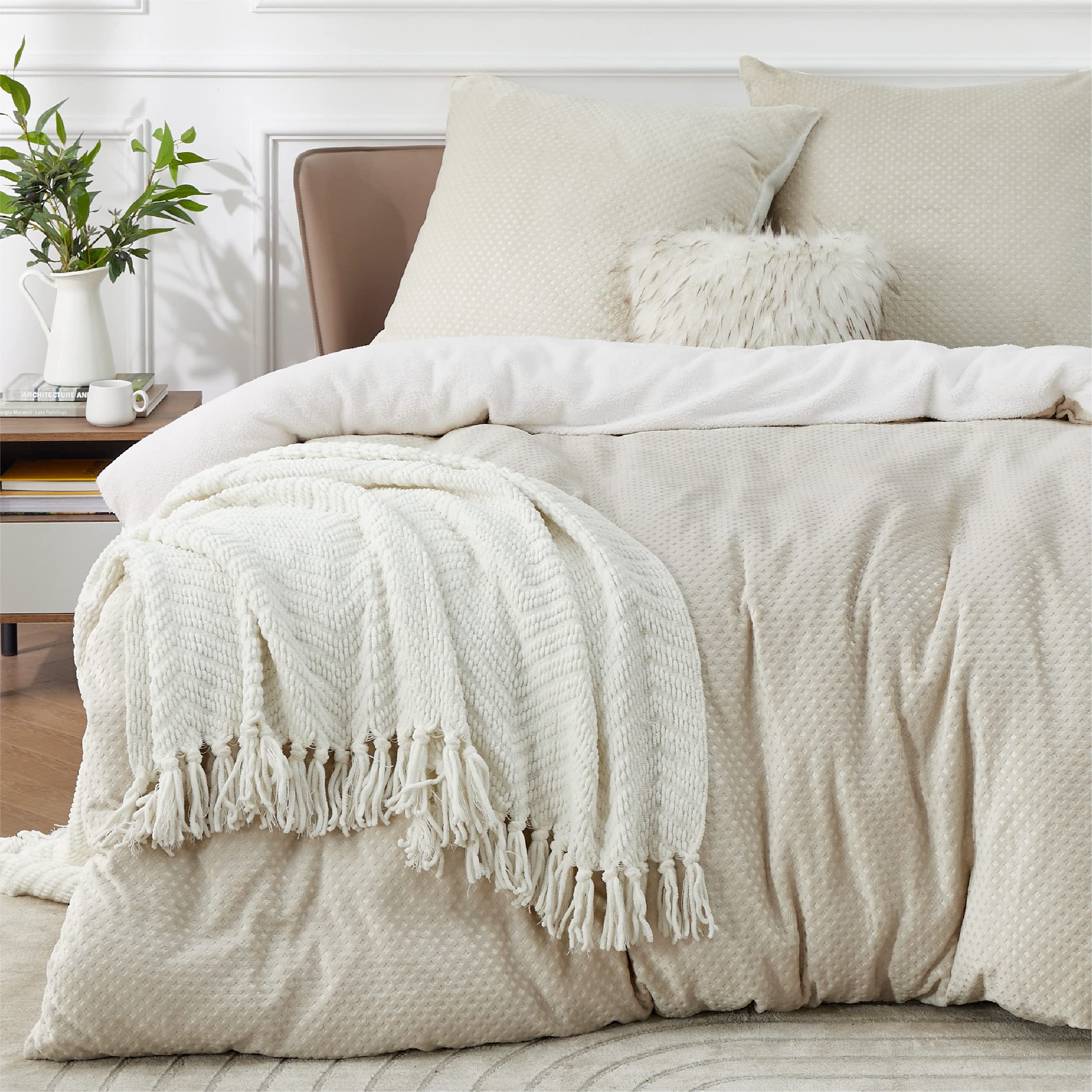 BEDSURE Flauschige Bettwäsche 200x200 Beige - Winter Bettbezug Fleece mit 2 Kissenbezüge 80x80 cm, Warme Bettwäsche-Sets mit Reissverschluss, Kuschel Waffelpique Winterbettwäsche für Doppelbett