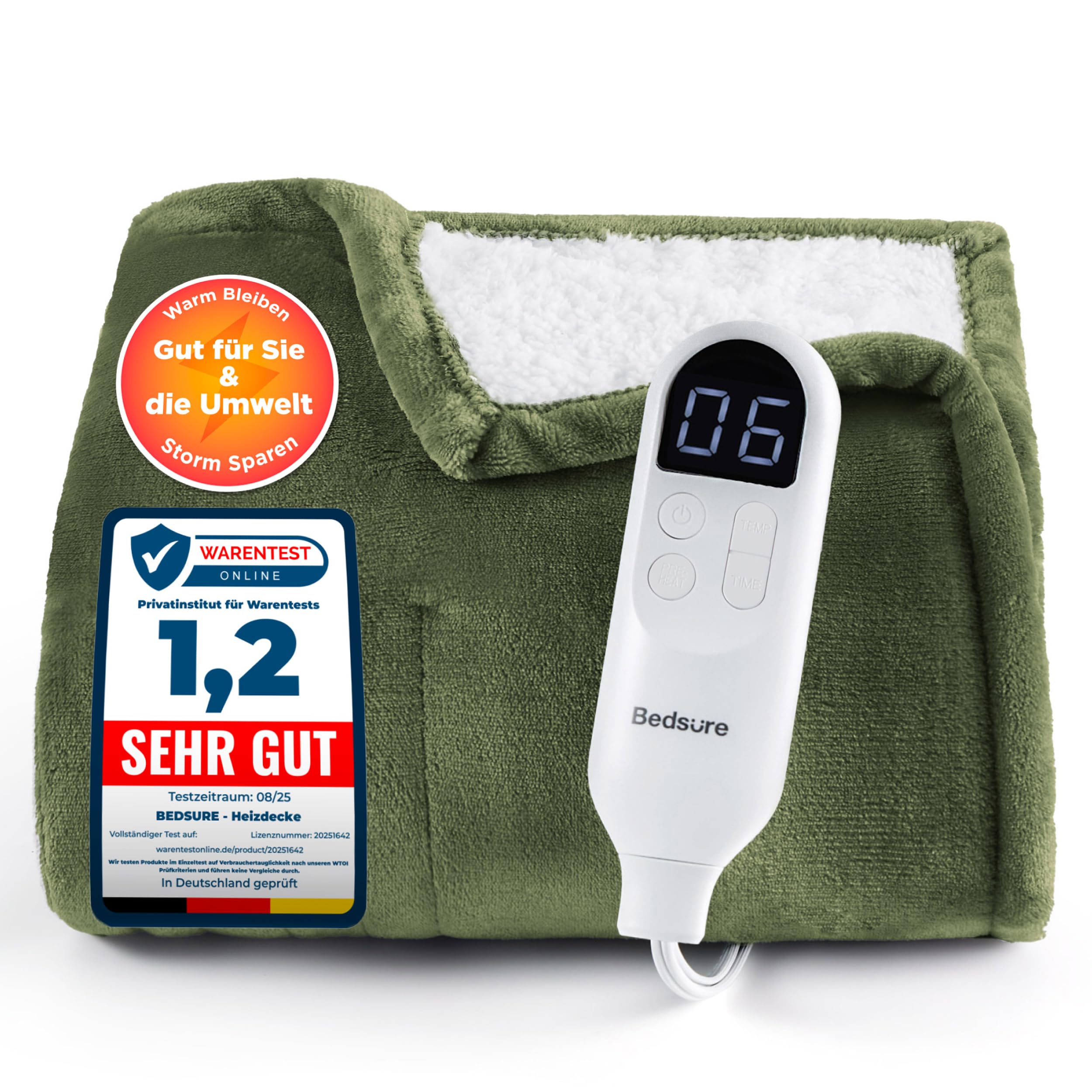 BEDSURE Heizdecke mit Abschaltautomatik Wärmedecke Geschenke für Frauen & Mama, Elektrische Kuscheldecke mit 6 Heizstufen & 10 Stunden Timer, 130x180cm, Grün