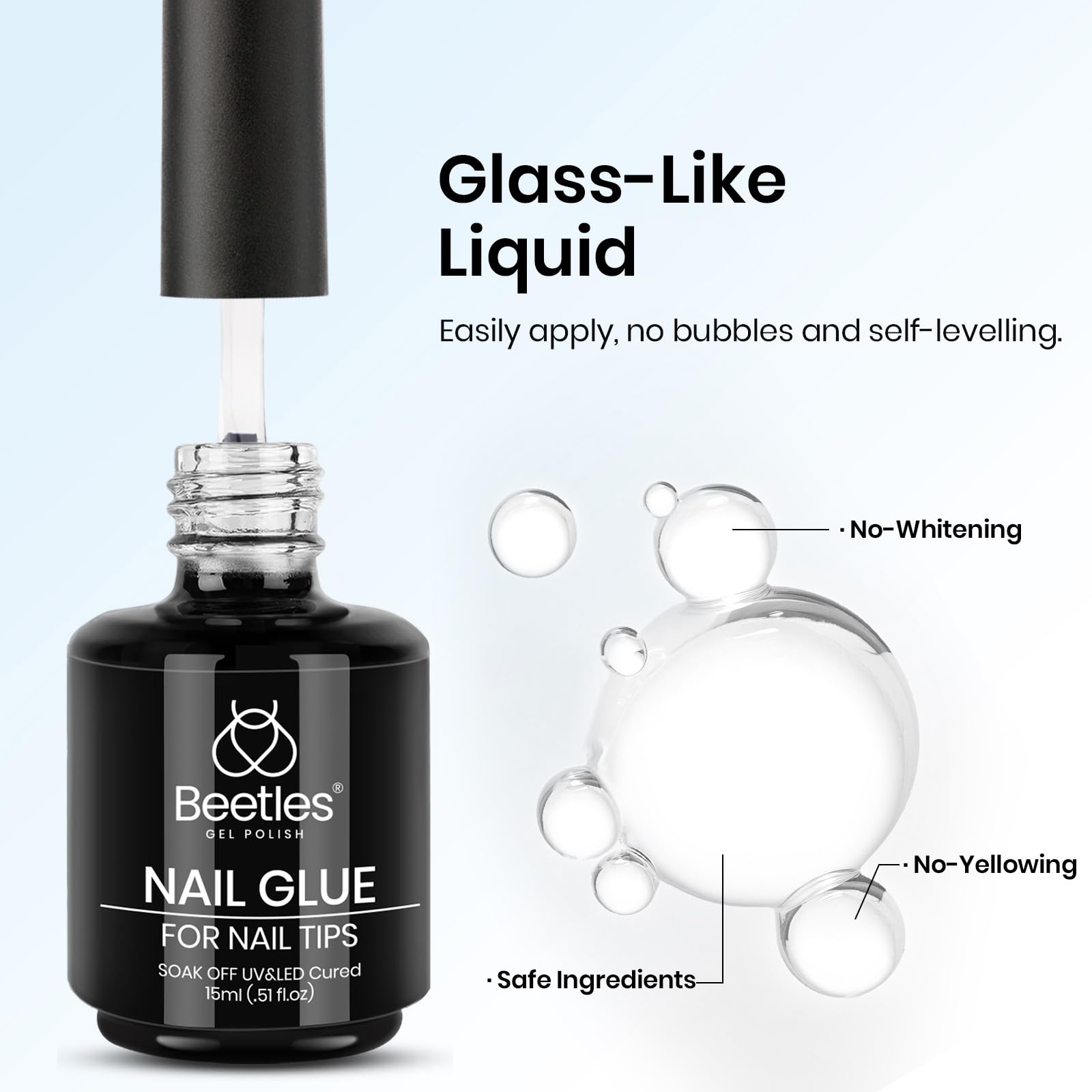 Beetles Gel Polish 9-in-1-Nagelkleber mit neuer Formel 15ml superstarker Pinsel-in-Nagel-Gelkleber für künstliche Nagelspitzen UV-LED-Lampe erforderlich