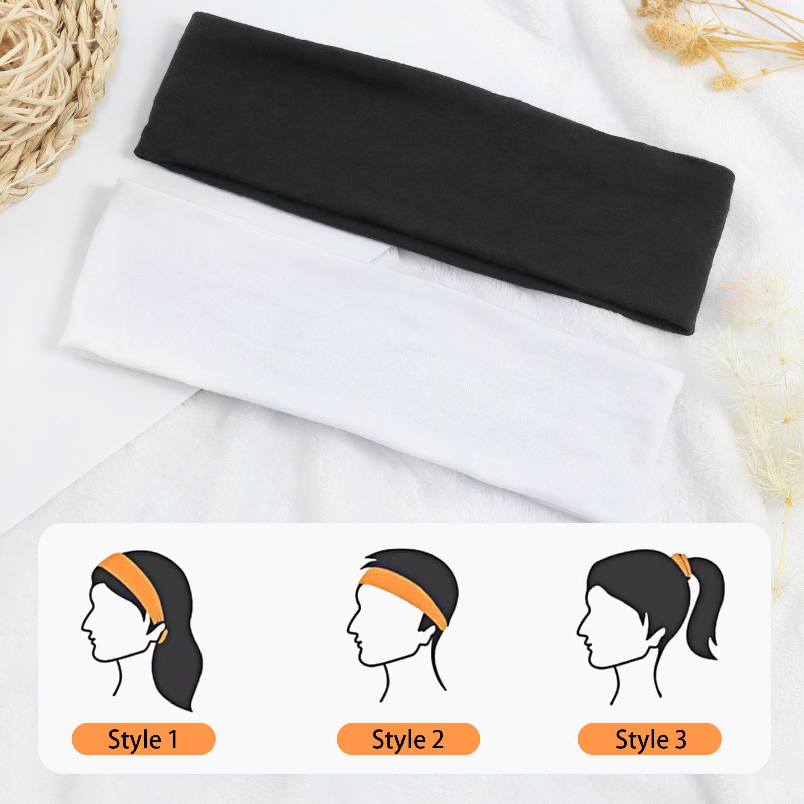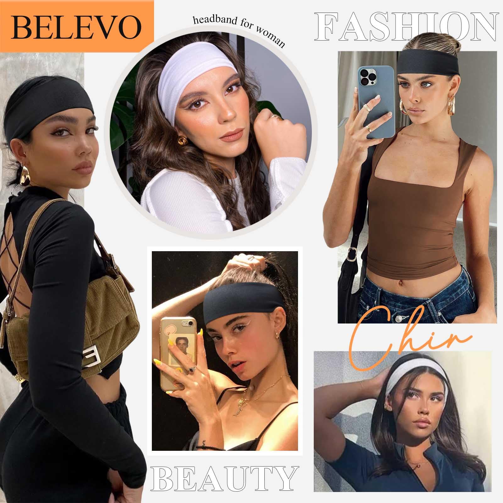 BELEVO Haarband Damen Sport, 7cm Headband Yoga Stirnband Damen Antirutsch Hair Band Haarbänder für Fitness Laufen Exercise Gym (Schwarz, Weiss)
