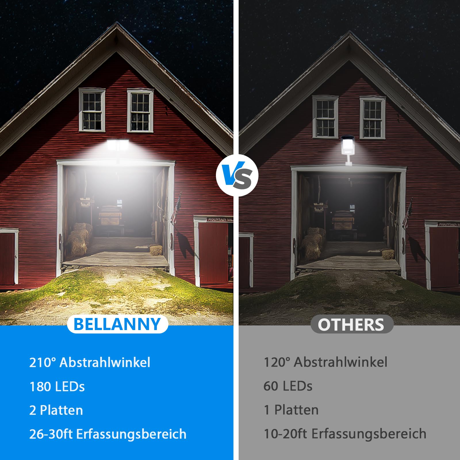 Bellanny 200W Strassenlaternen LED Solar Strahler mit Bewegungsmelder Sensor, 180LED Solarlampen Wandleuchte mit Fernbedienung, 6500K Strassenlampe Wegeleuchte Aussenleuchte für Garten Innenhöfe Garage
