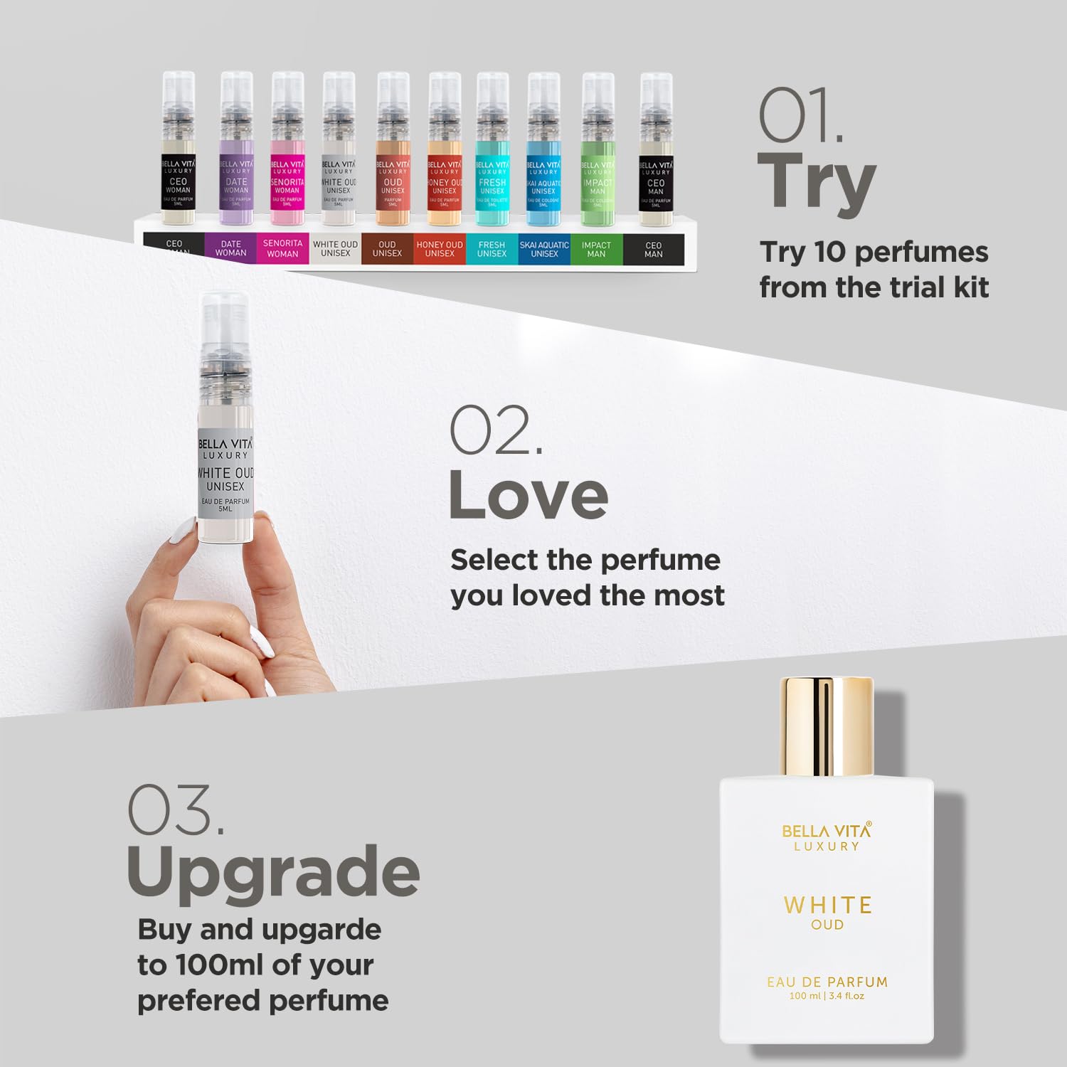 BellaVita Luxury White OUD Unisex Parfüm 100ml | Arabisches Eau de Parfum für Damen & Herren | Exquisite Oud, Vanille, Moschus & Vetiver Düfte | Langanhaltend, Vegan & Tierversuchsfrei