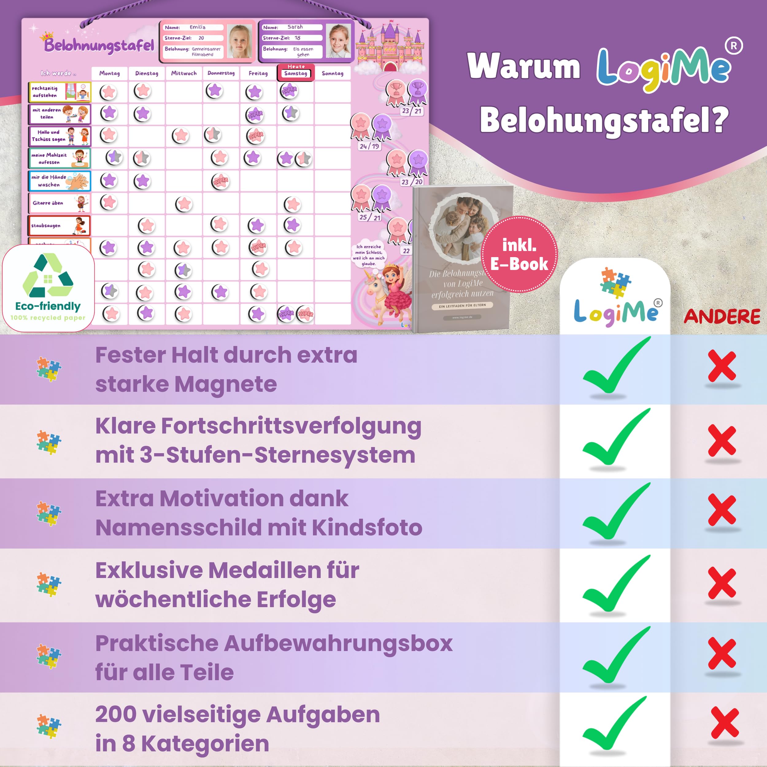 ✅ Nachhaltig & umweltfreundlich – 100 % Recyclingpapier, wiederverwendbare Magnete.