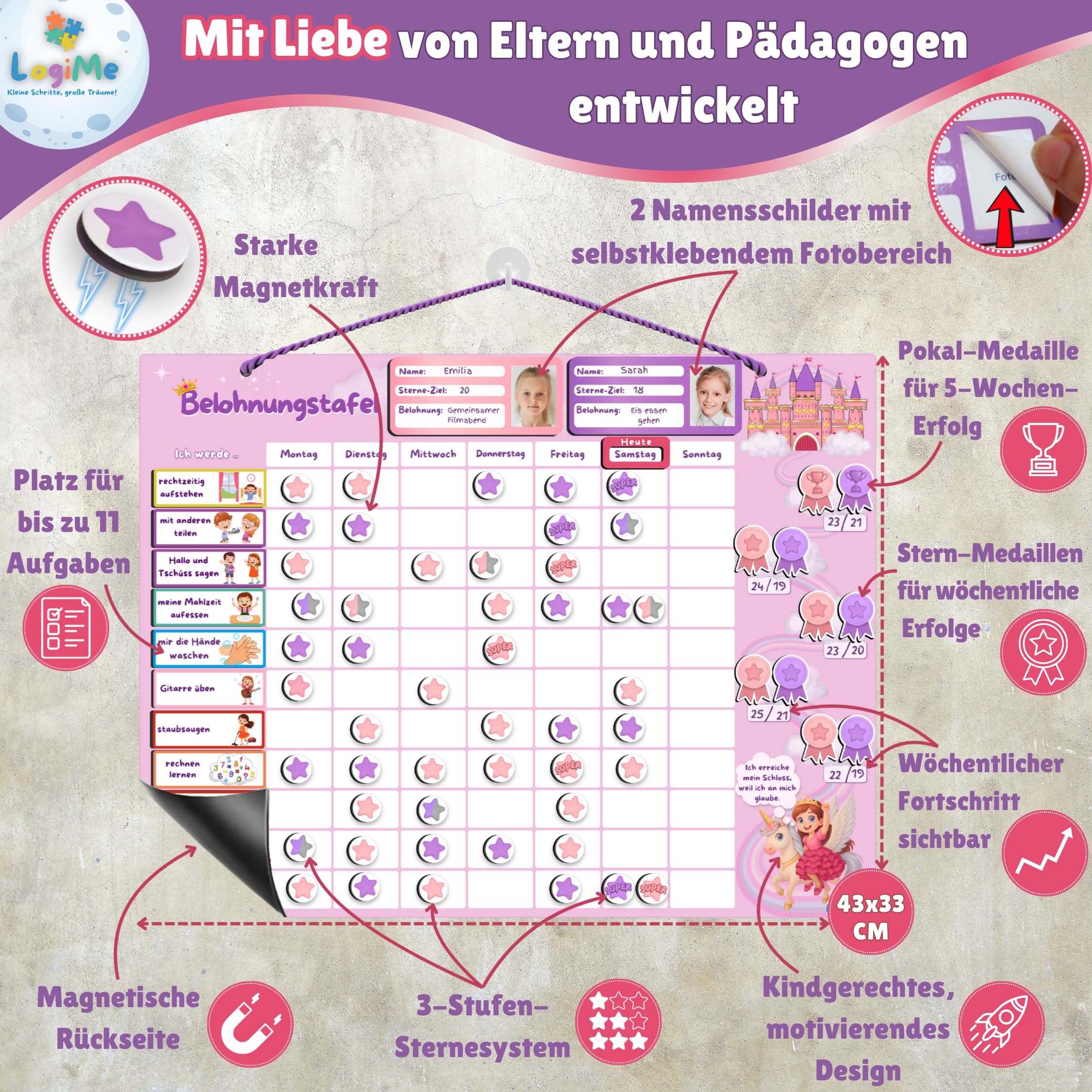 ★ 1 magnetische Belohnungstafel (für Wand & Kühlschrank)