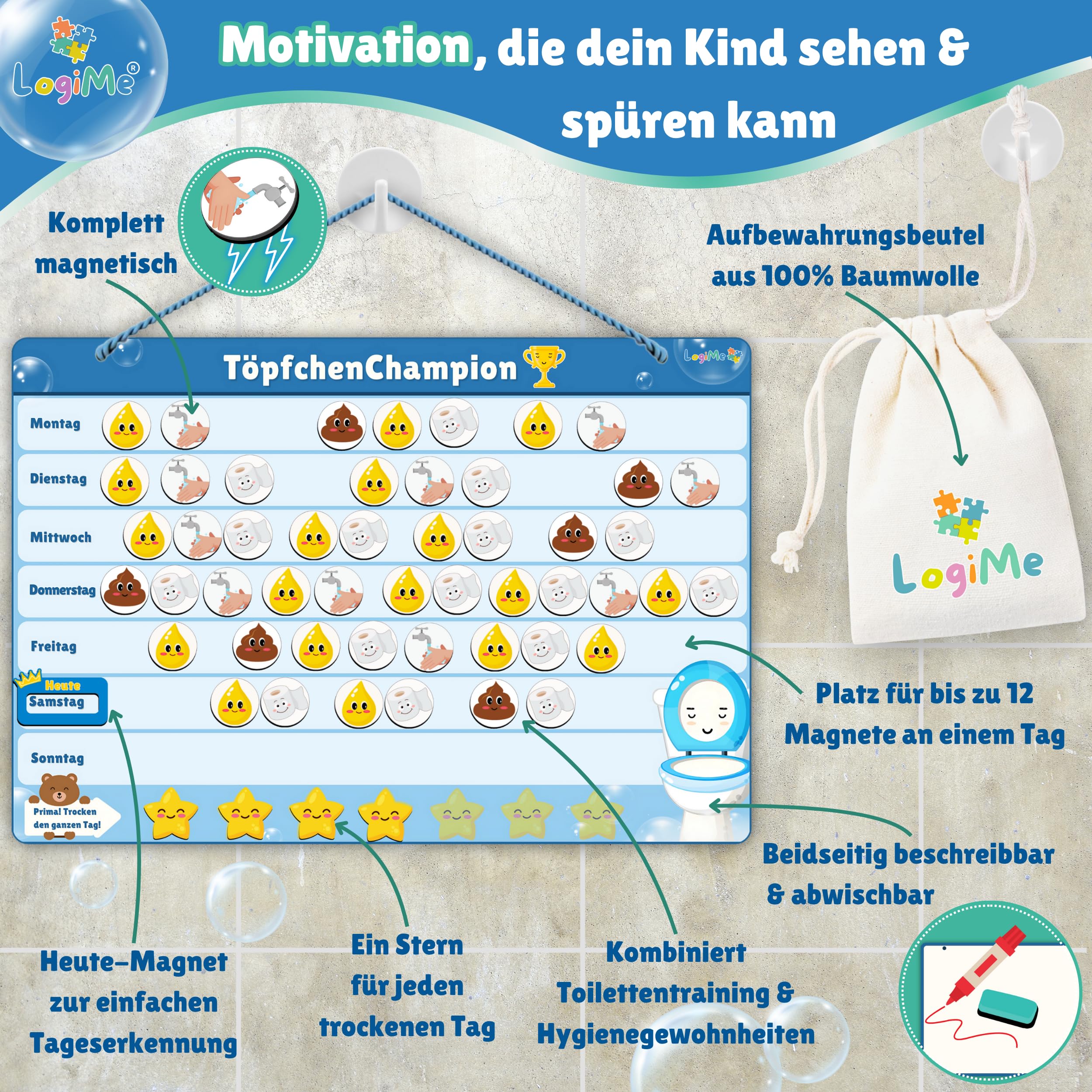 ????????????????????????® Töpfchentraining inkl. 116 MAGNETE - Pipi und Kacka Belohnungssystem für Kinder - Kalender fürs Töpfchen Training - Toilettentraining magnetisch Klo - Toilettentrainer Toilette Kleinkind